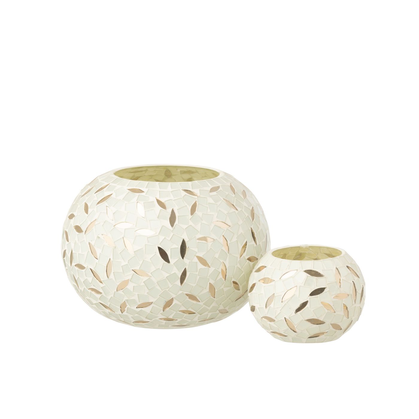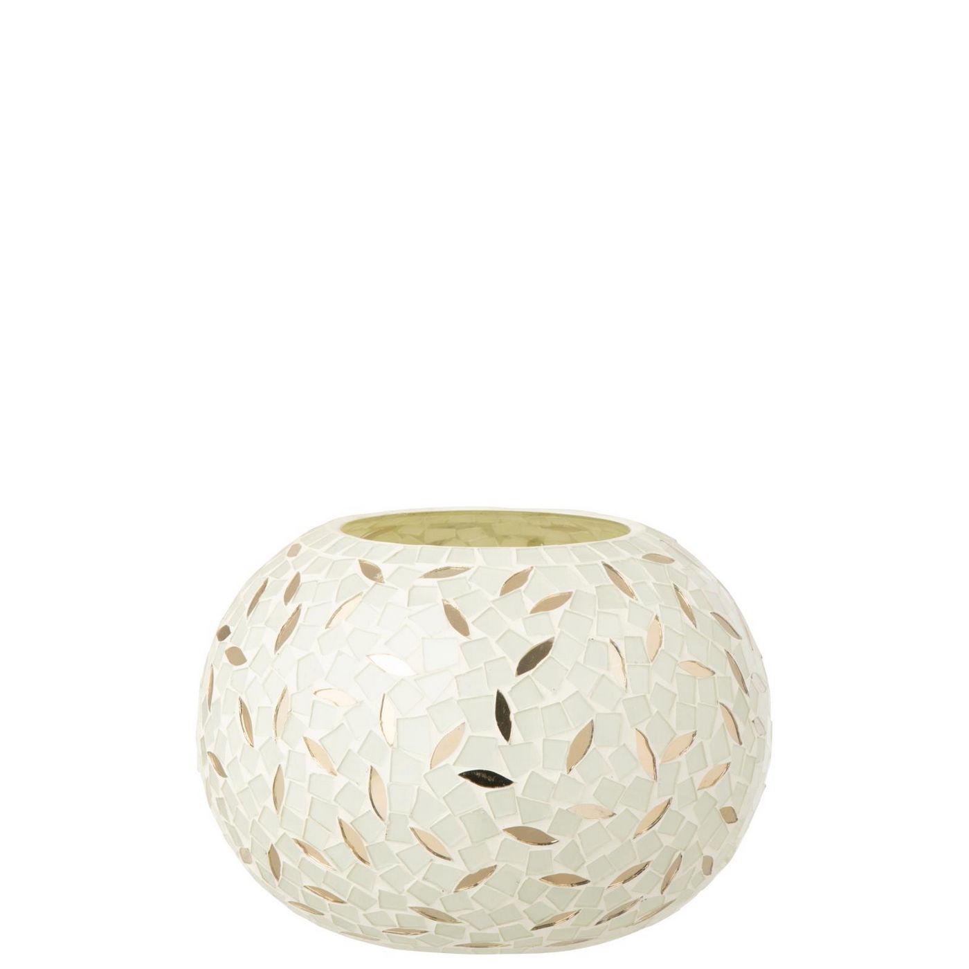 J Line Kerzenständer Ball Mosaik Glas Gebrochenes Weiß/Silberfarben Small