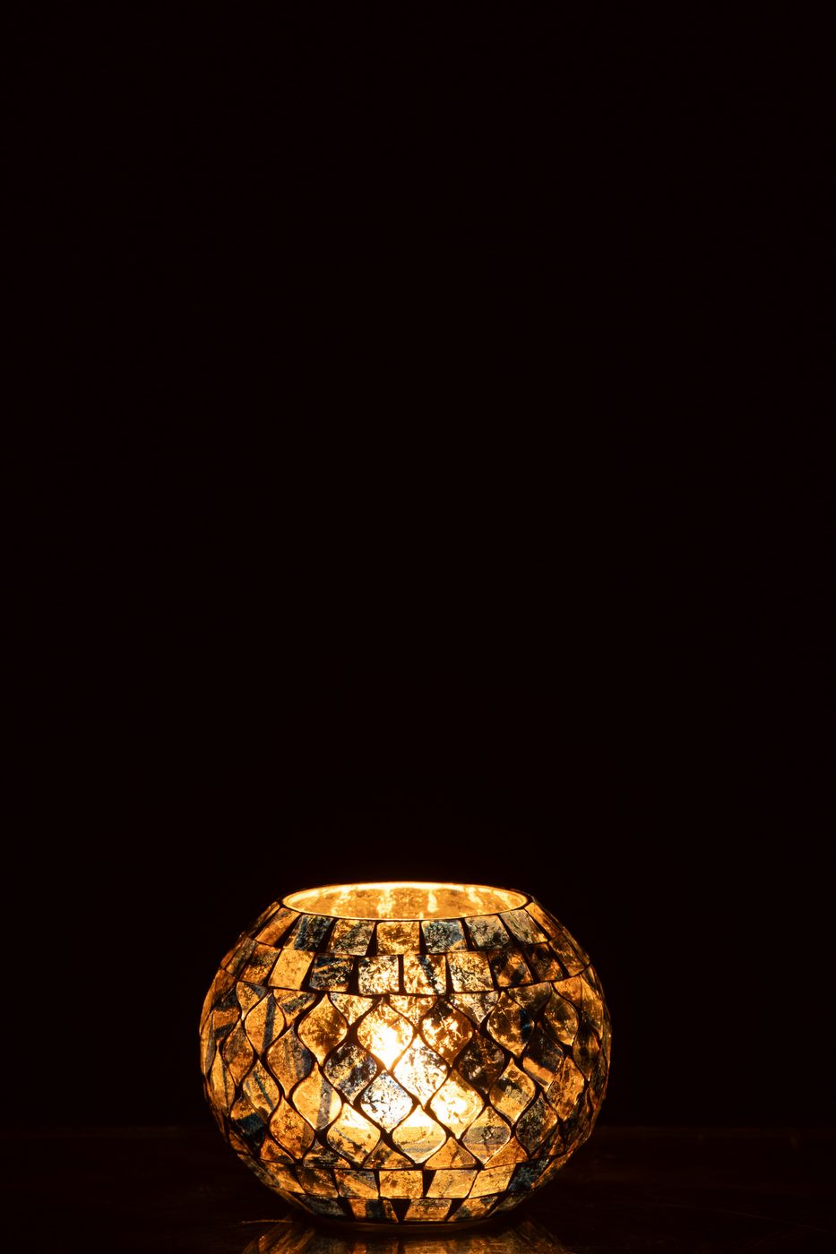 J-Line by Jolipa Photophore Mosaïque Verre Bleu Gris