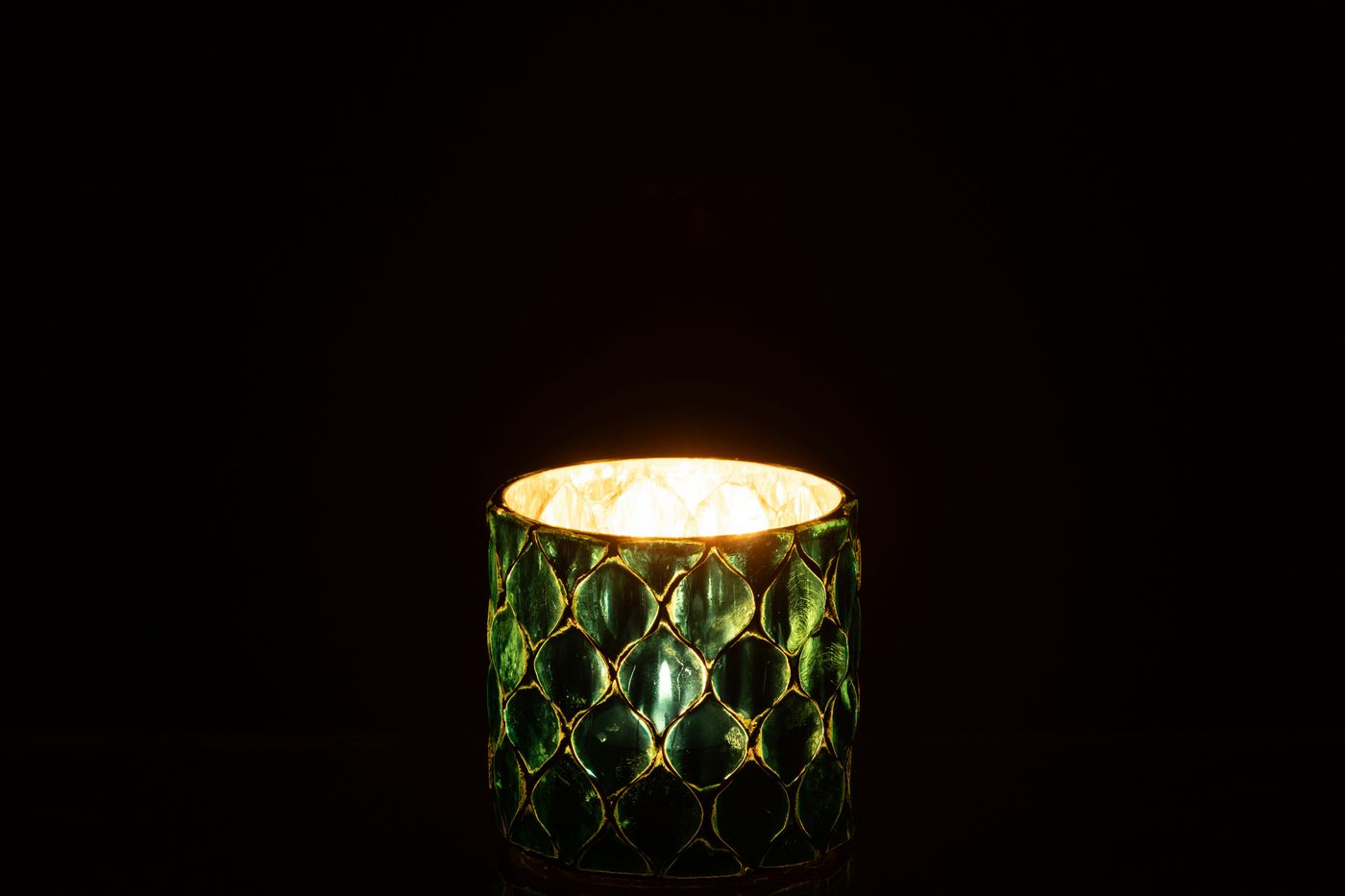 J-Line by Jolipa Photophore Cylindre Mosaïque Verre Bleu Azur