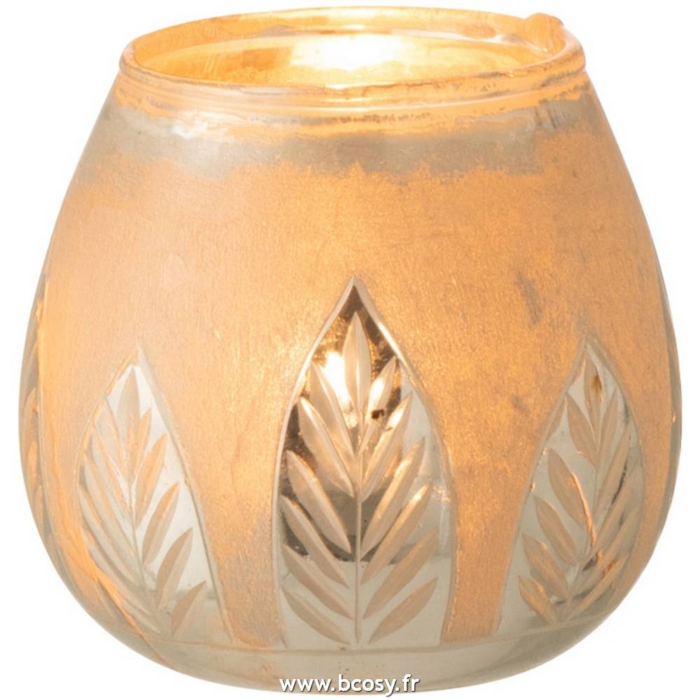 Jolipa Photophore Feuille Rond Verre Argent Small