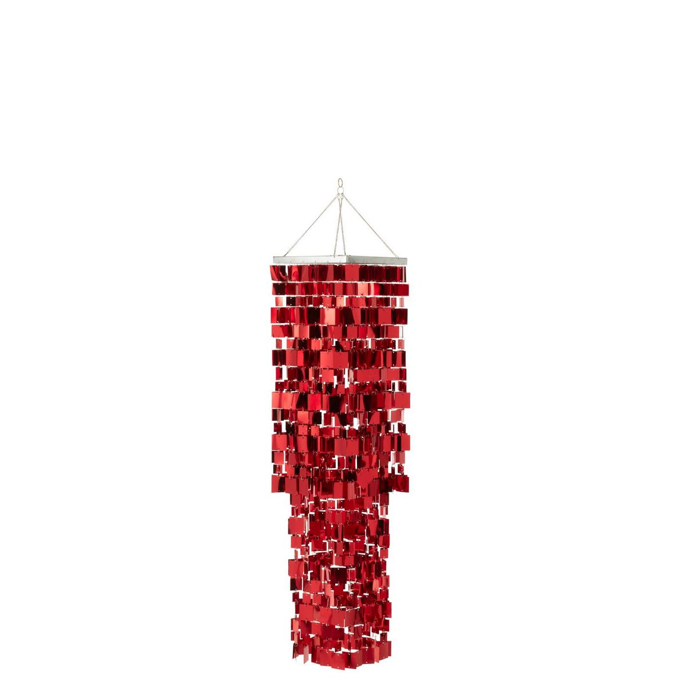 J-Line Abat-Jour Chandelier Carré Pvc Rouge Medium L30xB30xH122 cm 56684