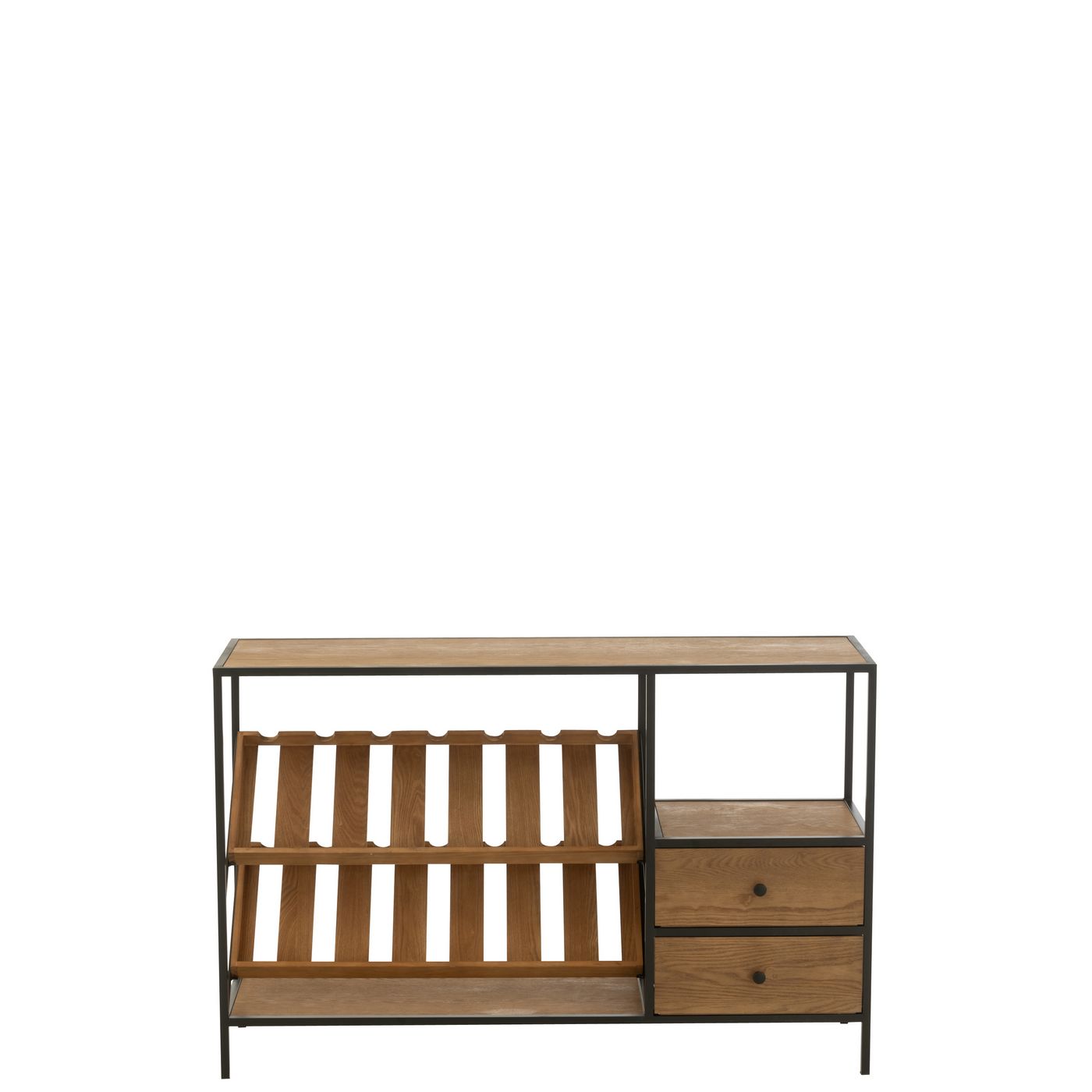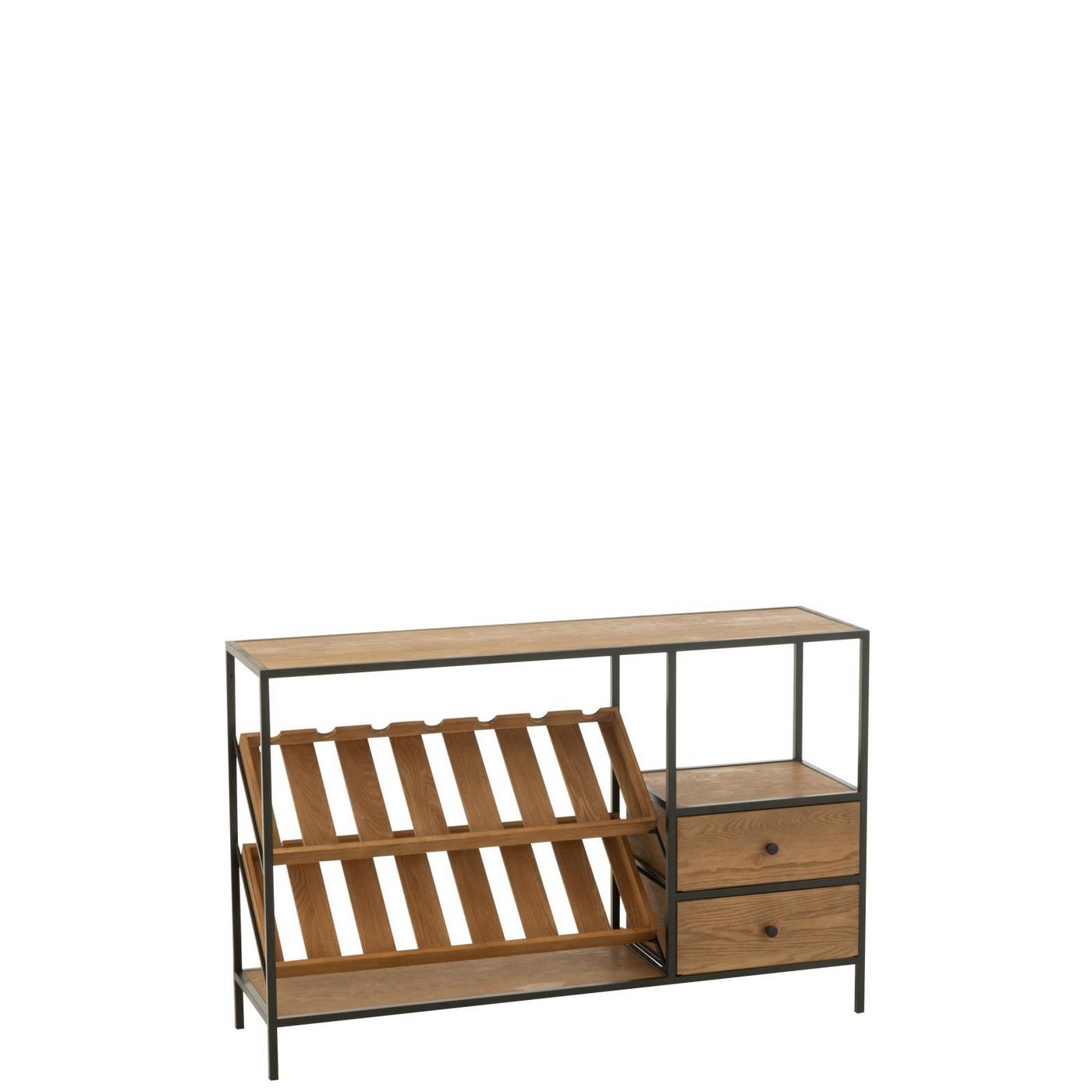 J-Line Meuble Bar Wine Placage Naturel-Noir Small L120xB33xH77 cm 55903