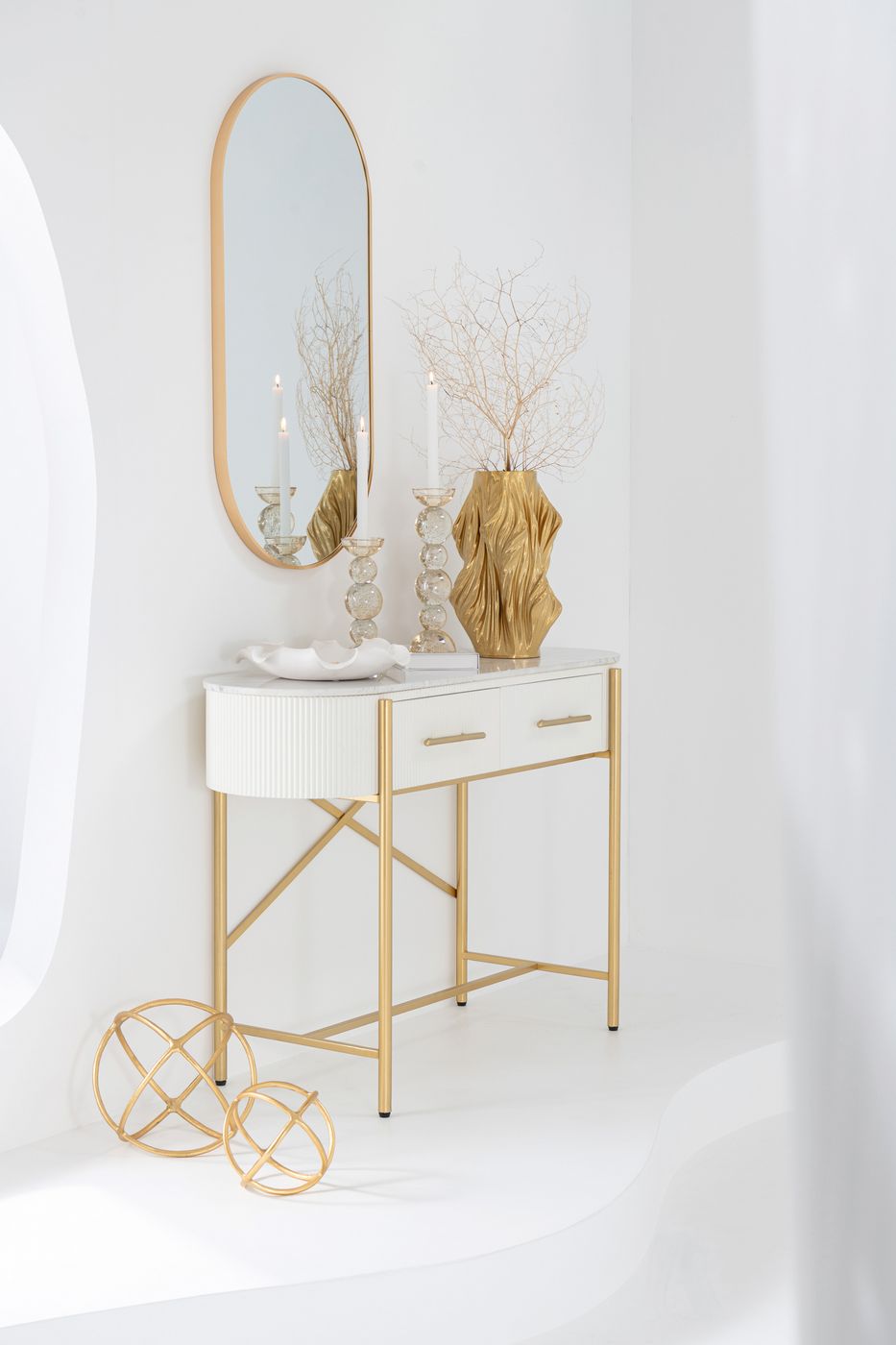 Jolipa Console Mdf Marbre Métal Blanc Doré
