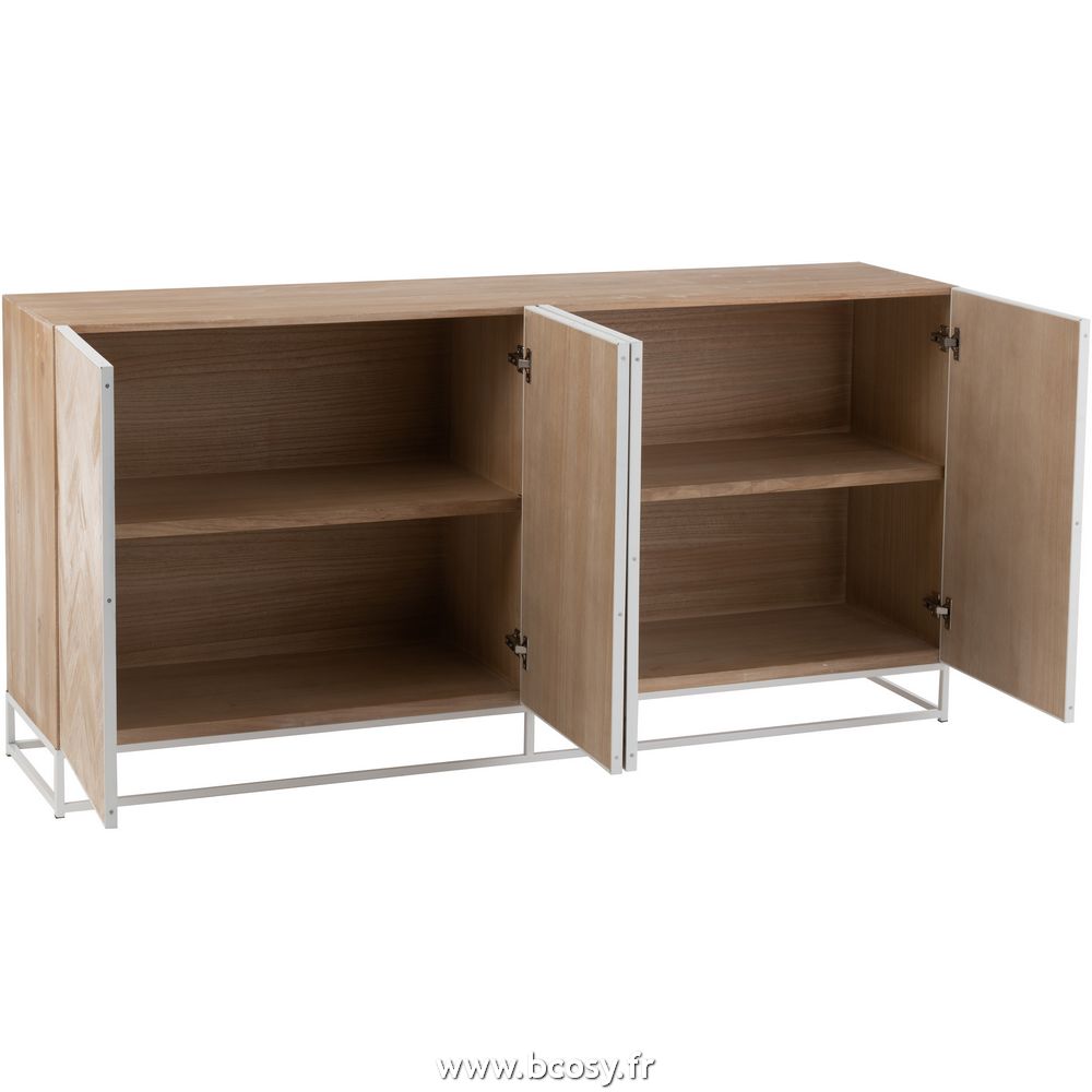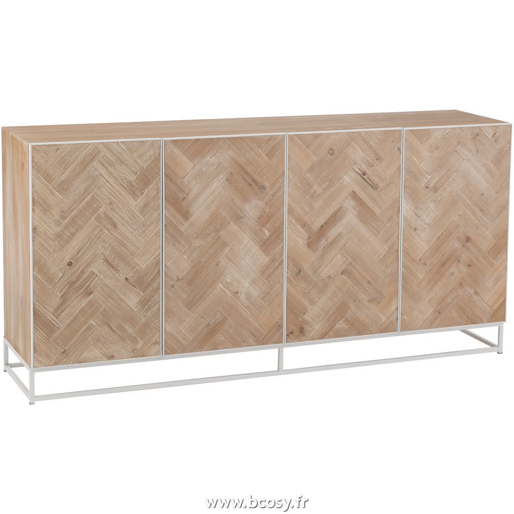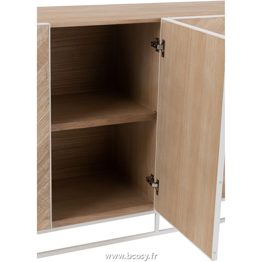 Jolipa Dressoir 4 Portes Zigzag Bois Metal Naturel Blanc