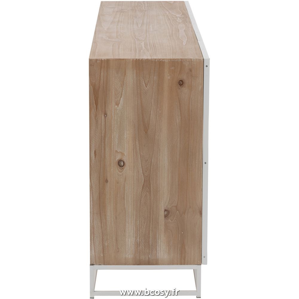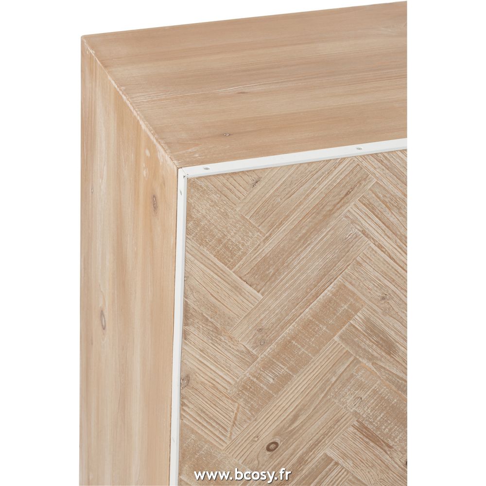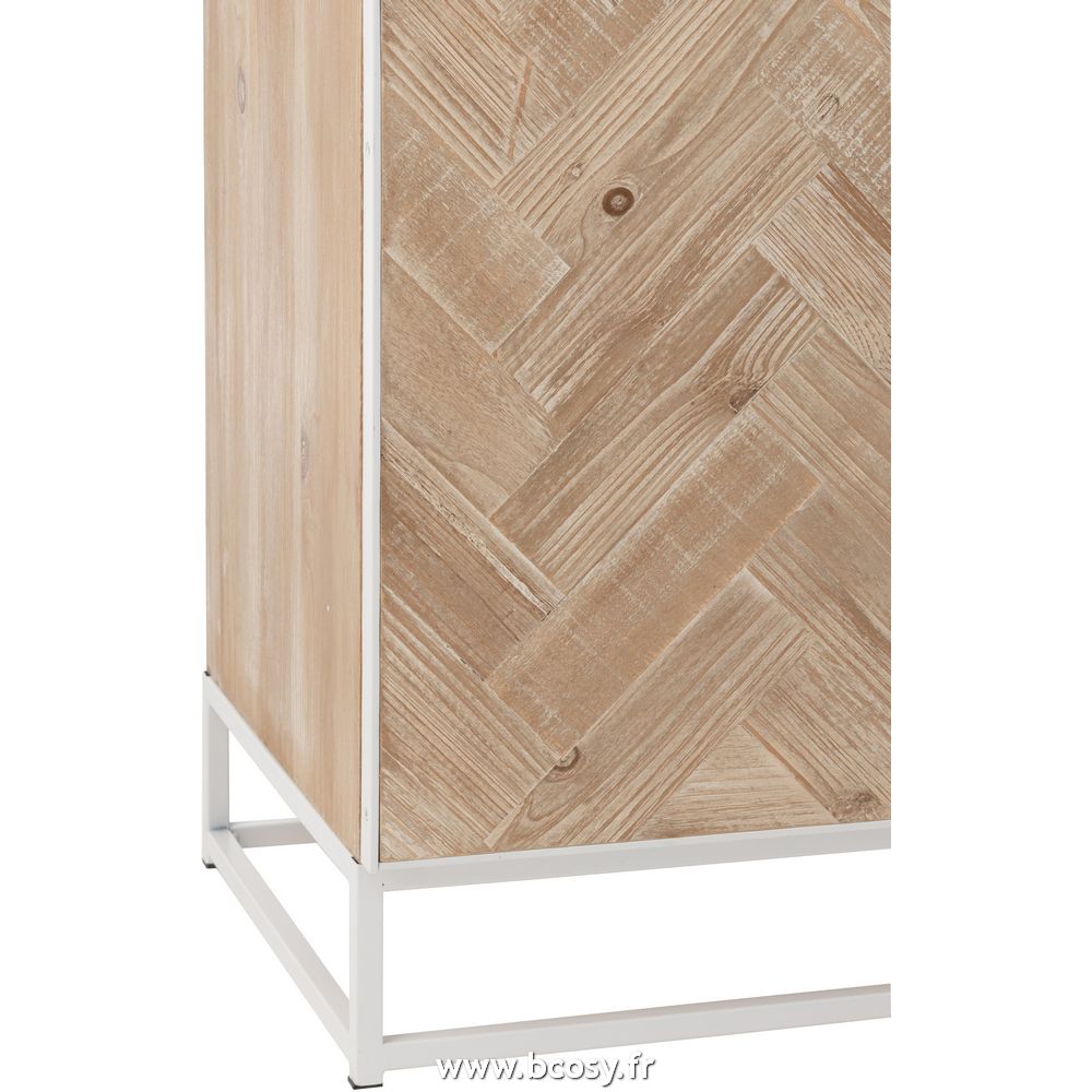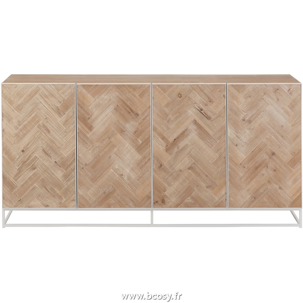 Jolipa Dressoir 4 Portes Zigzag Bois Metal Naturel Blanc