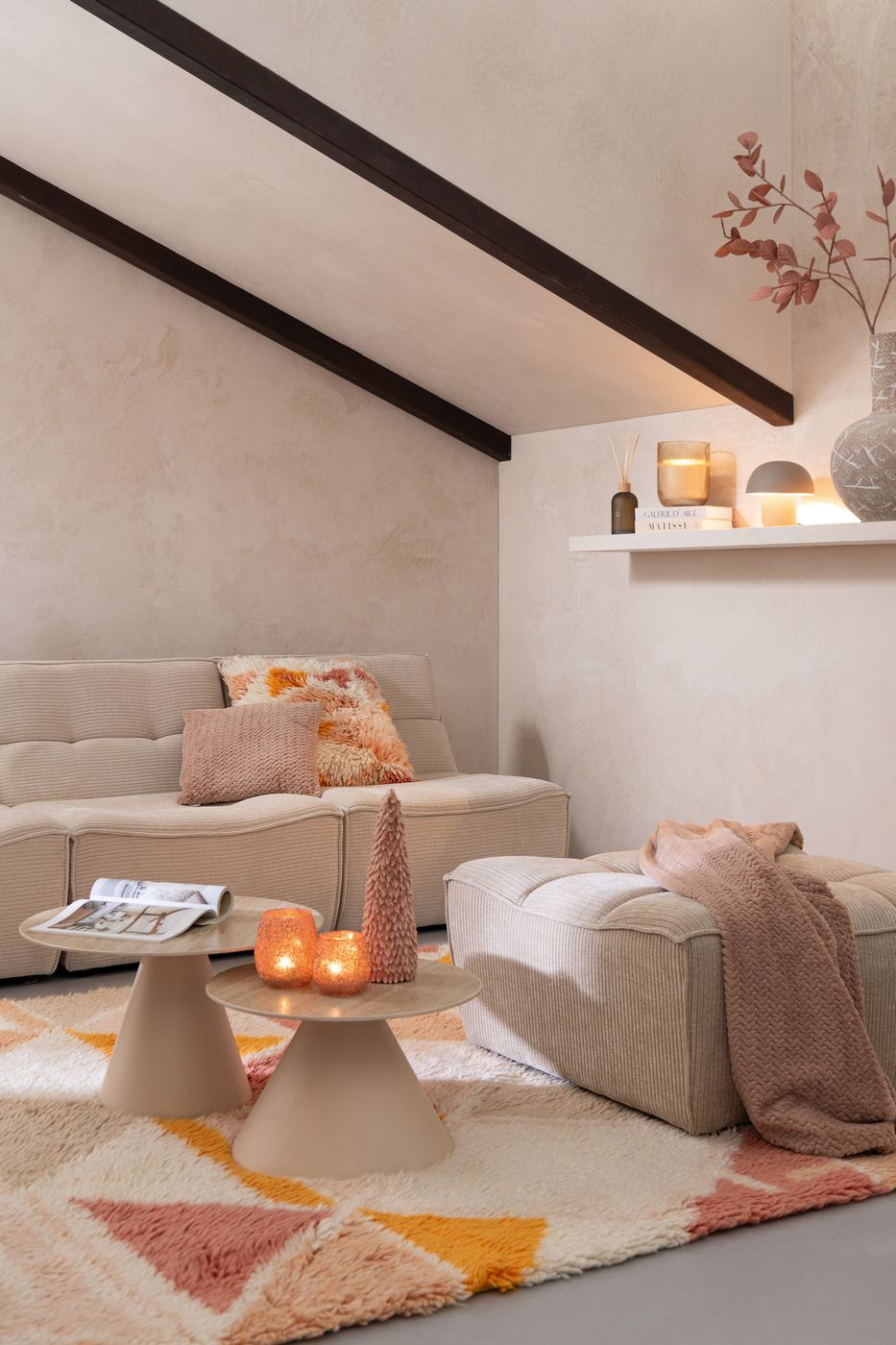 J-Line Set De 2 Table D'Appoint Cône Fer Écru-Beige L60xB60xH32 cm 55844