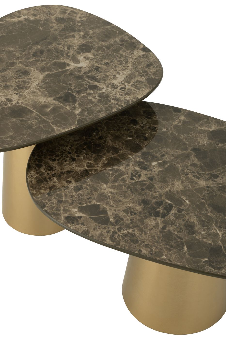 J-Line by Jolipa Set De 2 Table D'Appoint Marble Effect Fer Bronze/Taupe