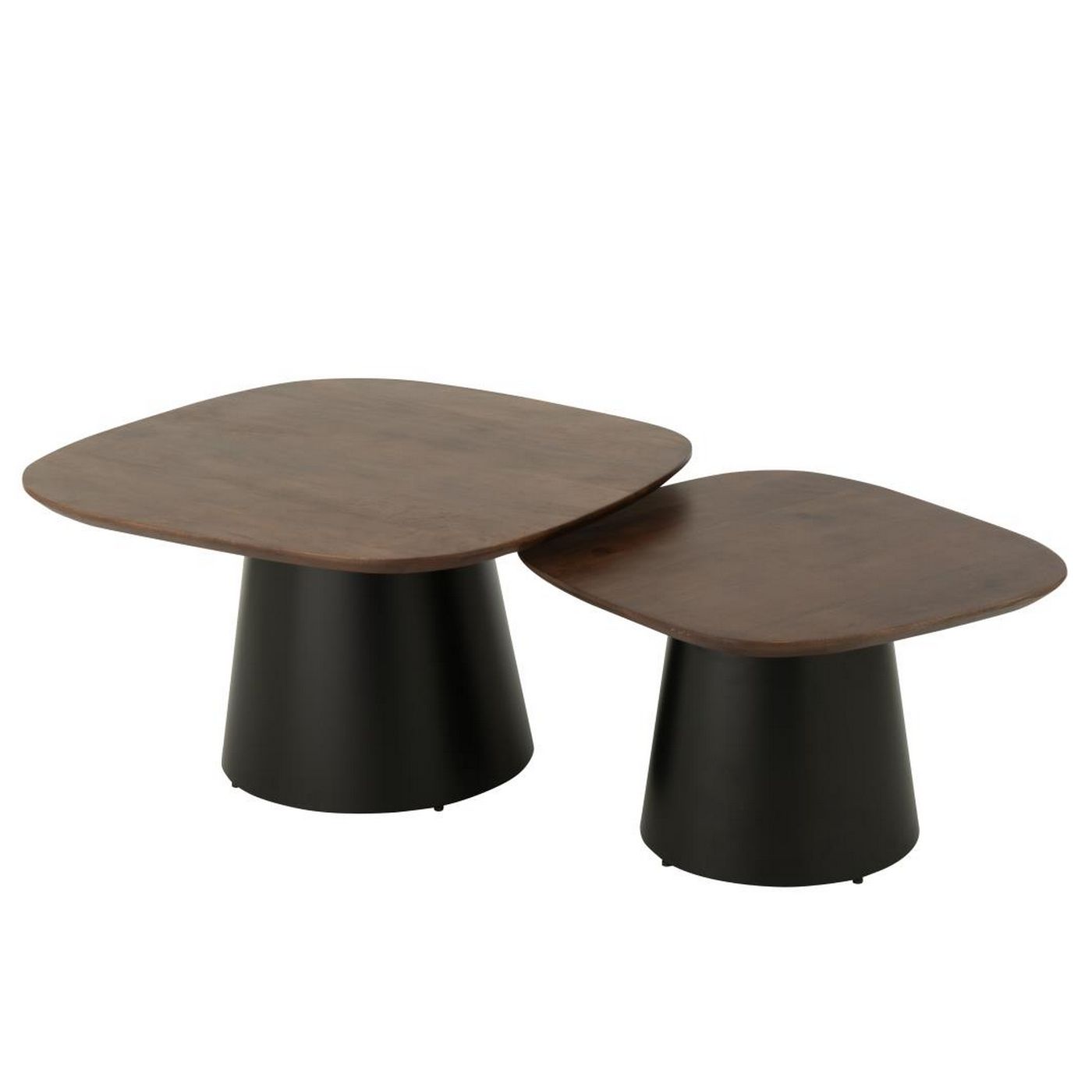 J-Line Set De 2 Table D'Appoint Carré Bois De Manguier Marron Foncé-Noir L79xB74xH43 cm 55864