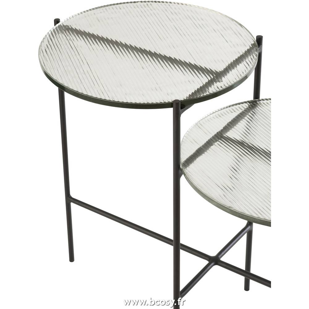 Jolipa Table Gigogne 2 Niveaux Ronde Verre Metal Transparent Noir