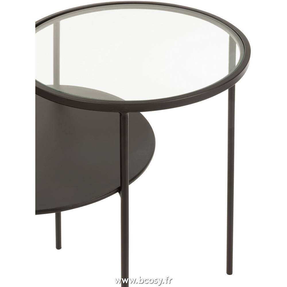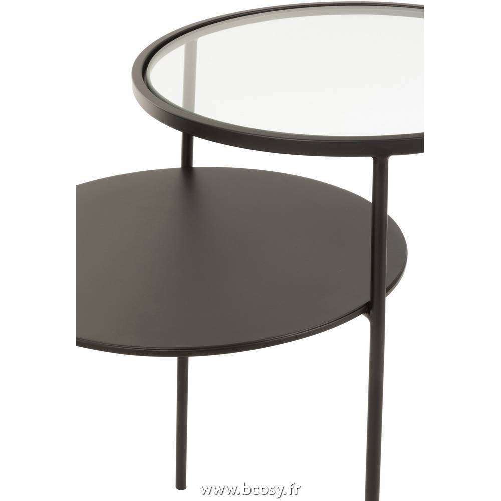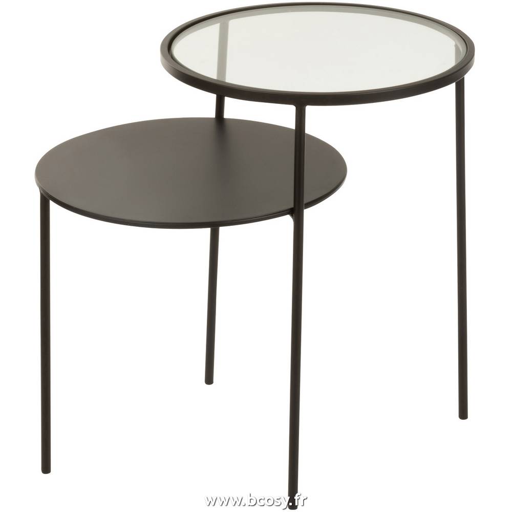 Jolipa Table Gigogne 2 Niveau Metal Verre Noir Small