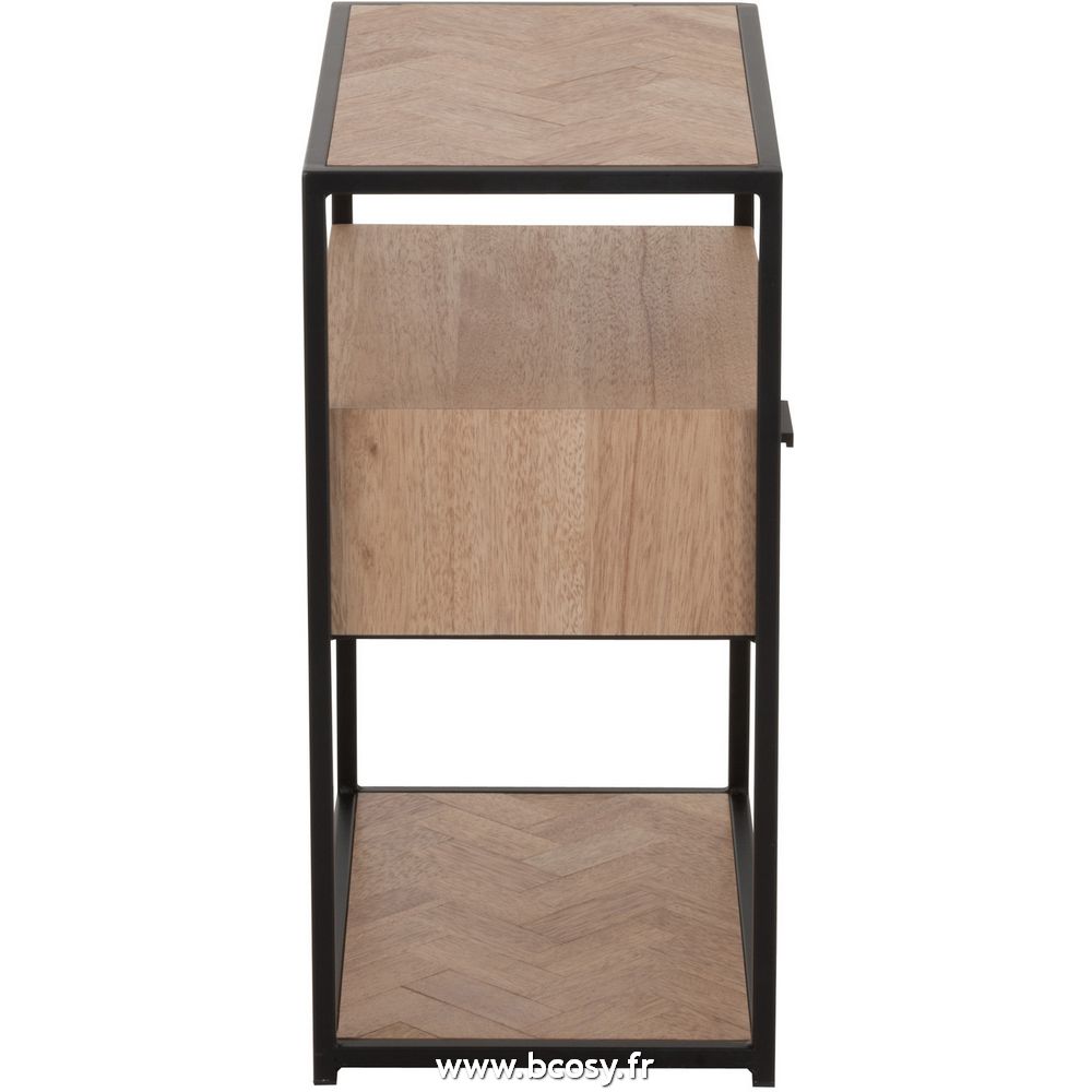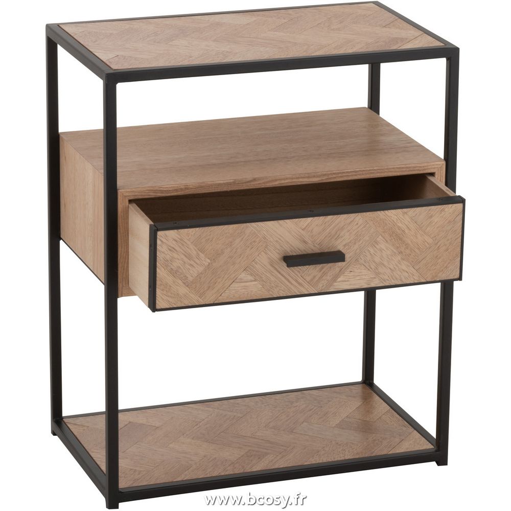 J-Line Table Gigogne Zigzag 1 Tiroir Bois-Metal Naturel-Noir L50xB30xH61 cm 25018
