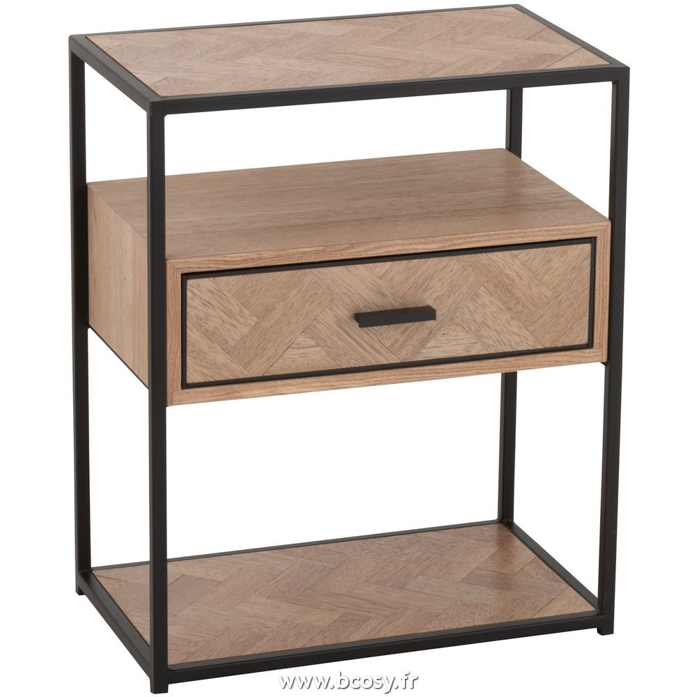 Jolipa Table Gigogne Zigzag 1 Tiroir Bois Metal Naturel Noir
