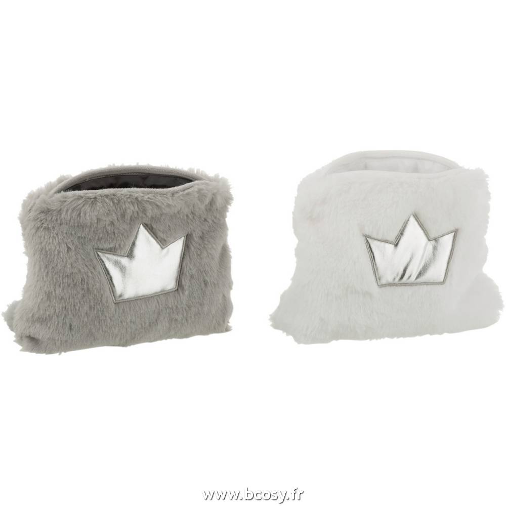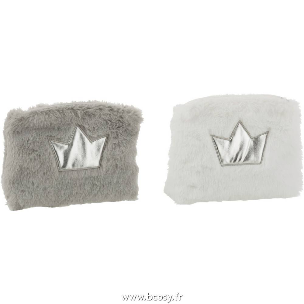 J-Line by Jolipa Trousse De Toilette Couronne Peluche Blanc/Gris/Argent Assortiment De 2