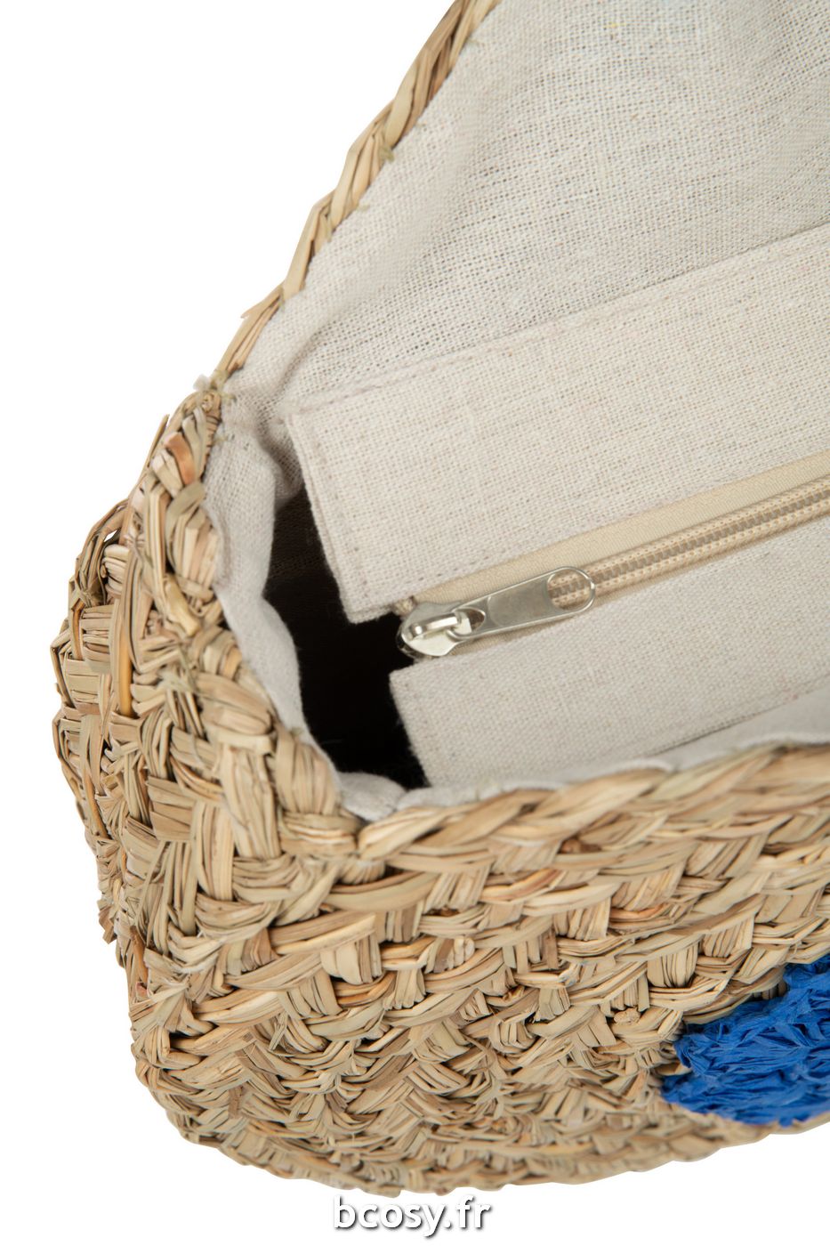 J-Line by Jolipa Sac De Plage Rond Fleur Jonc De Mer Nat/Bleu