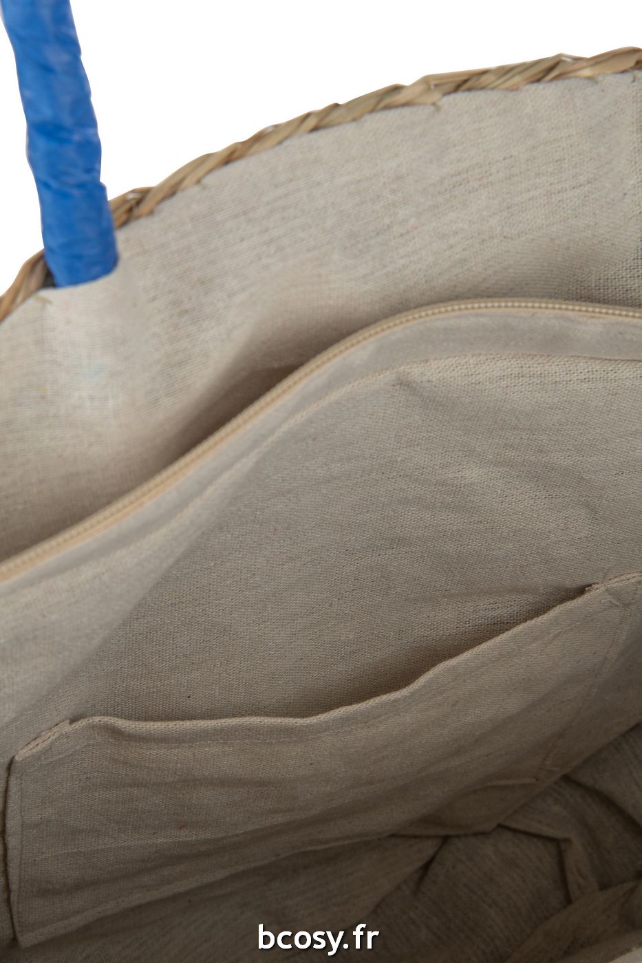 Jolipa Sac De Plage Rond Fleur Jonc De Mer Nat Bleu