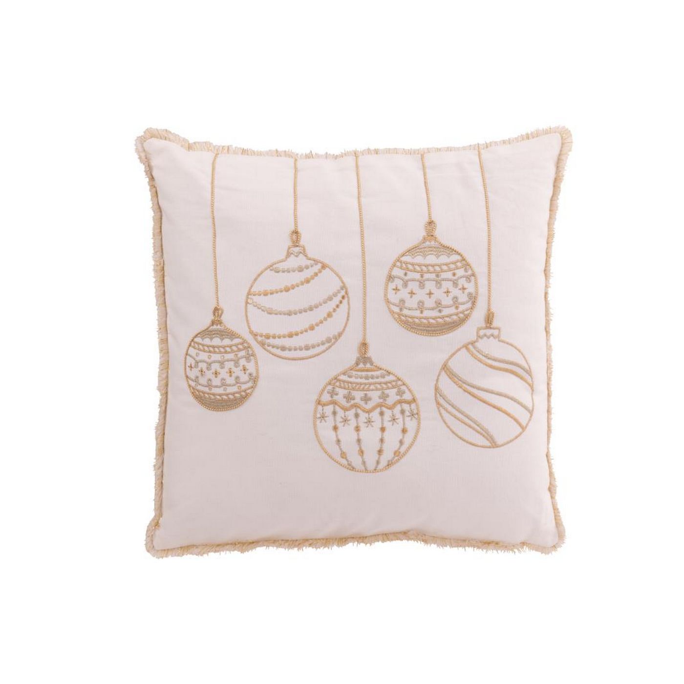 J Line Cushion Christmas Baubles Cotton White/Gold Colored
