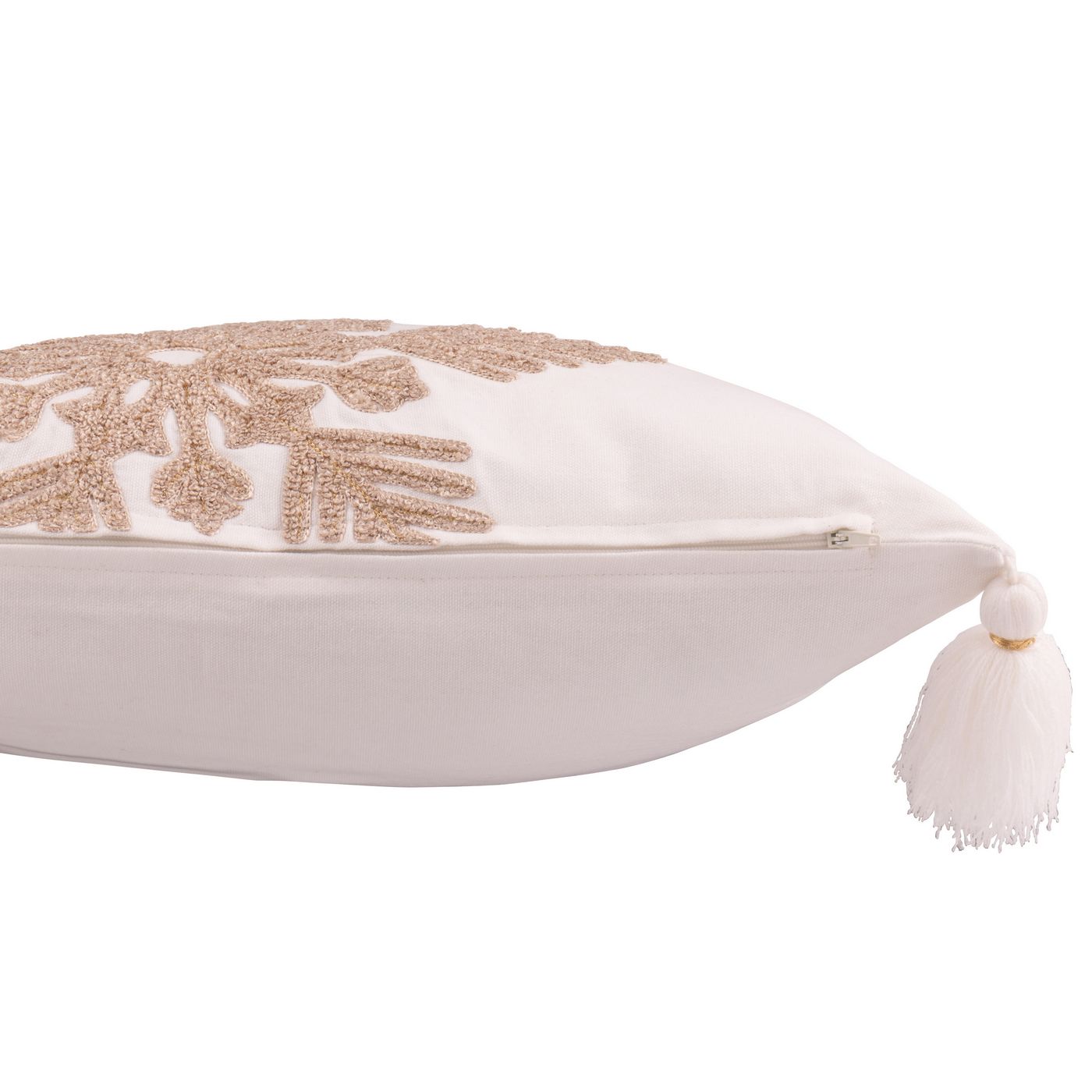 J Line Cushion Snowflake+Tassels Cotton White/Beige