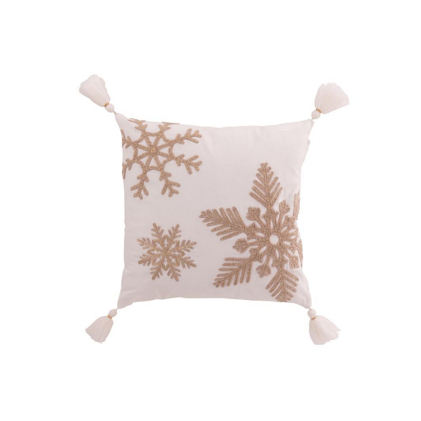J Line Kissen Schneeflocke + Quasten Baumwolle Weiß/Beige