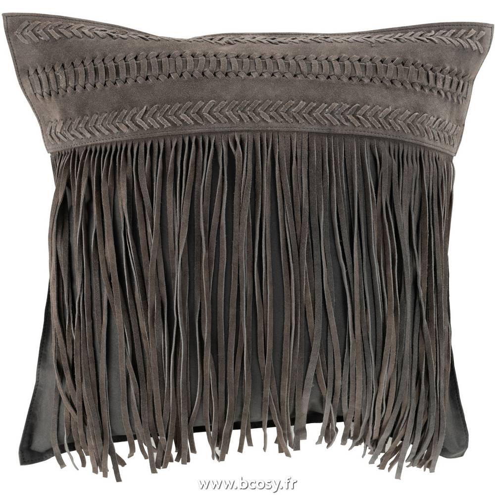 J-Line by Jolipa Coussin Franges Carre Cuir Gris