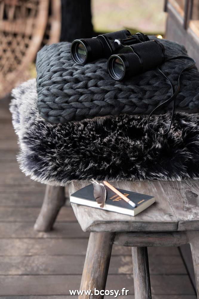 Jolipa Coussin Fourrure Longs Gris Noir Blanc