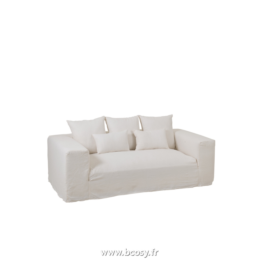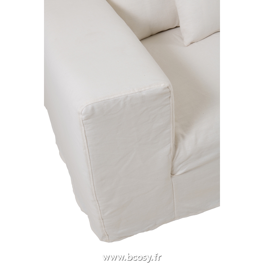 J-Line Housse Pour Fauteuil-5Coussins Monaco Sofa Lin Blanc Marshmallow L220xB105xH70 cm 22181