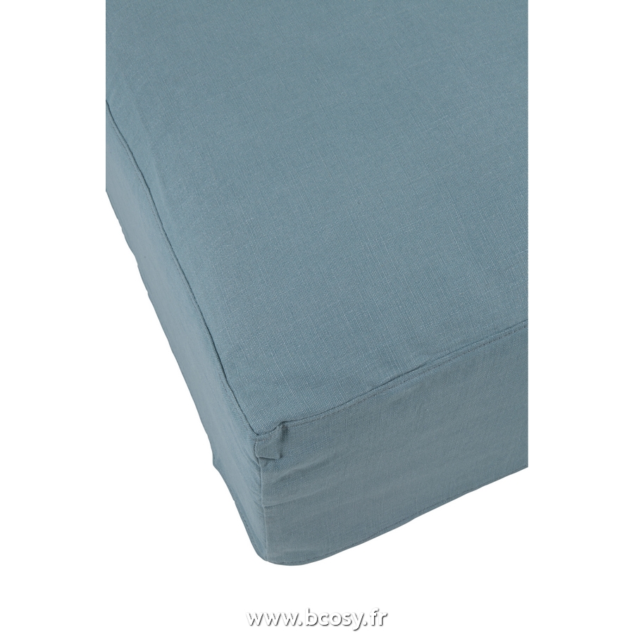 J-Line Housse Pour Pouf Monaco Lin Bleu Jeans L105xB105xH40 cm 22214