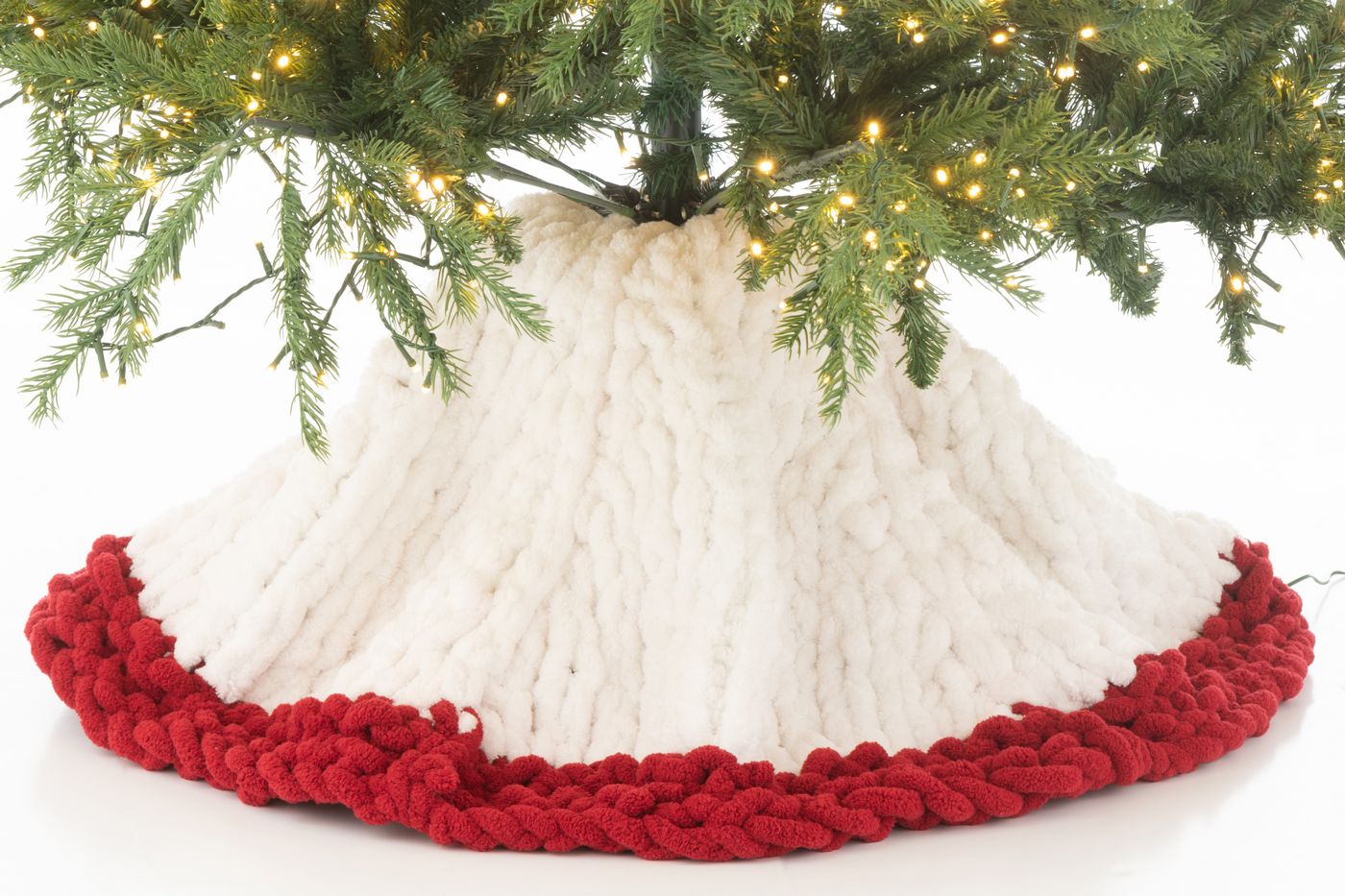 J Line Christmas Tree Skirt Knitted Polyester White/Christmas Red