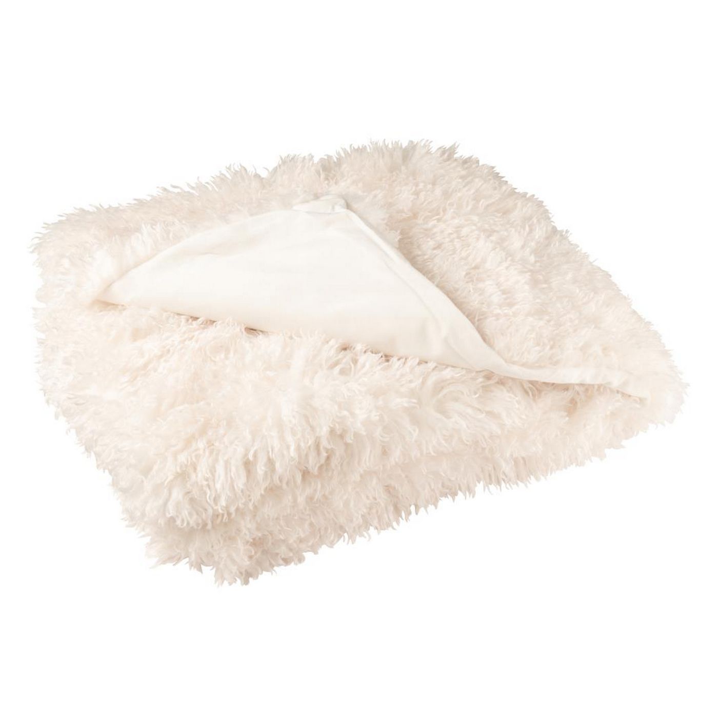 J-Line Couverture Moutie Polyester Blanc L130xB180 cm 56916