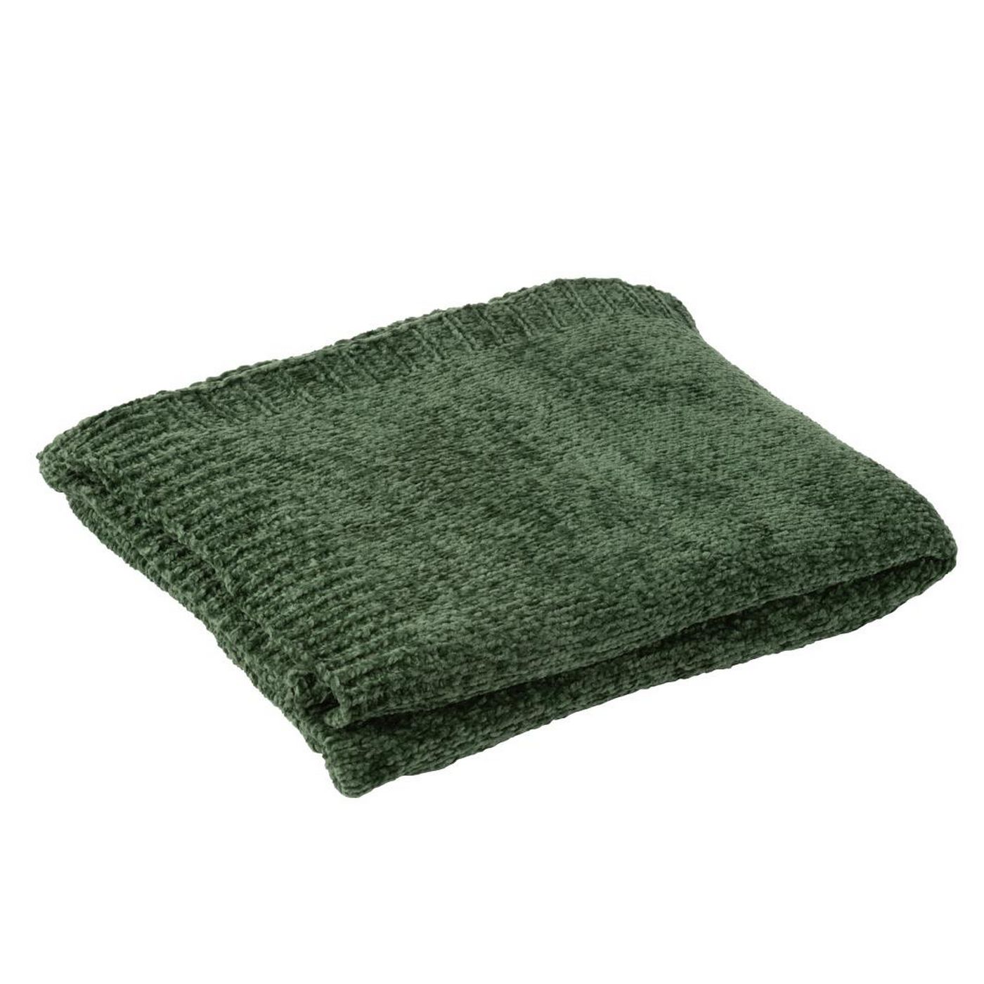 J-Line Couverture Chenille Polyester Vert Foncé L130xB170 cm 57039