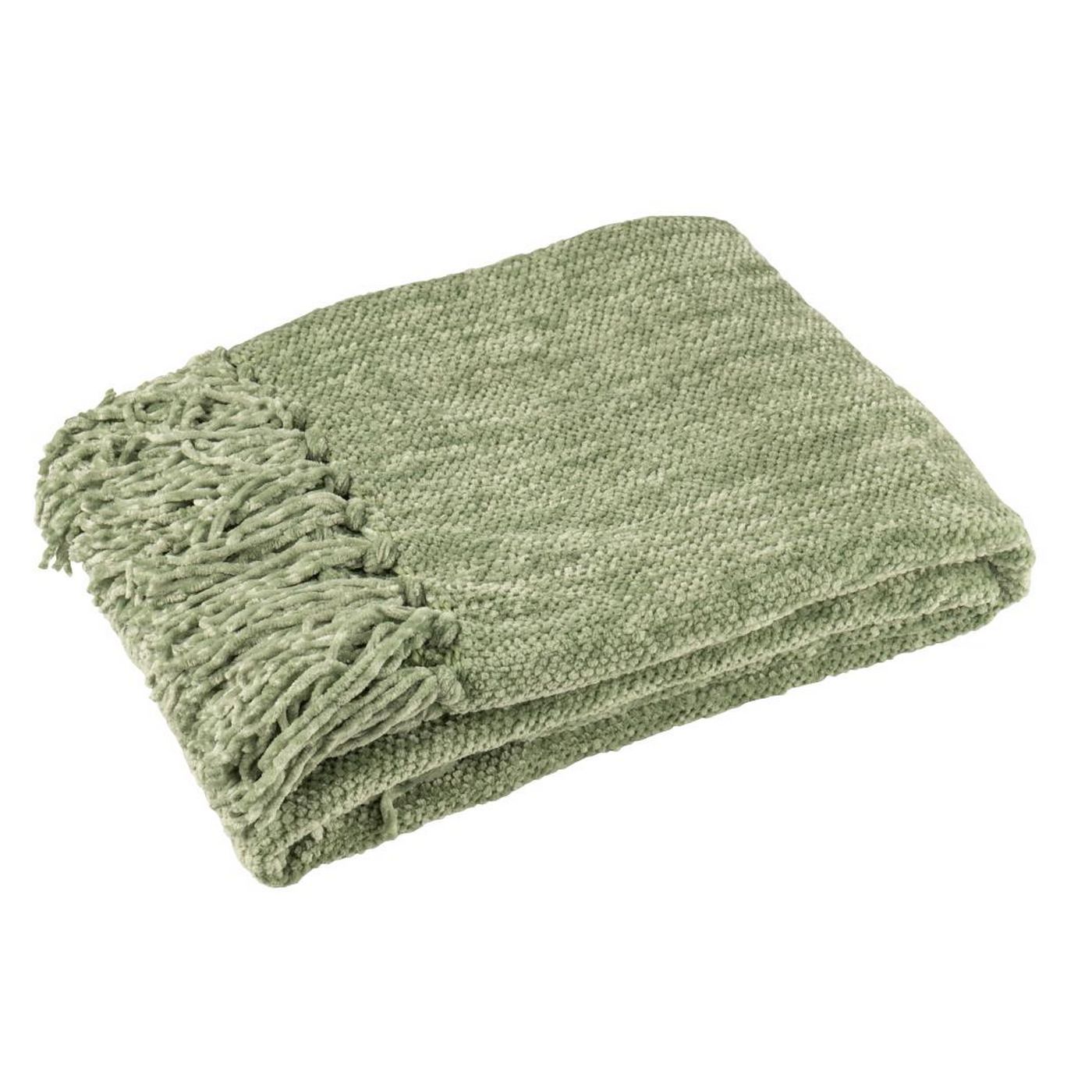J-Line Couverture Chenille Polyester Vert Mousse L130xB170 cm 57066