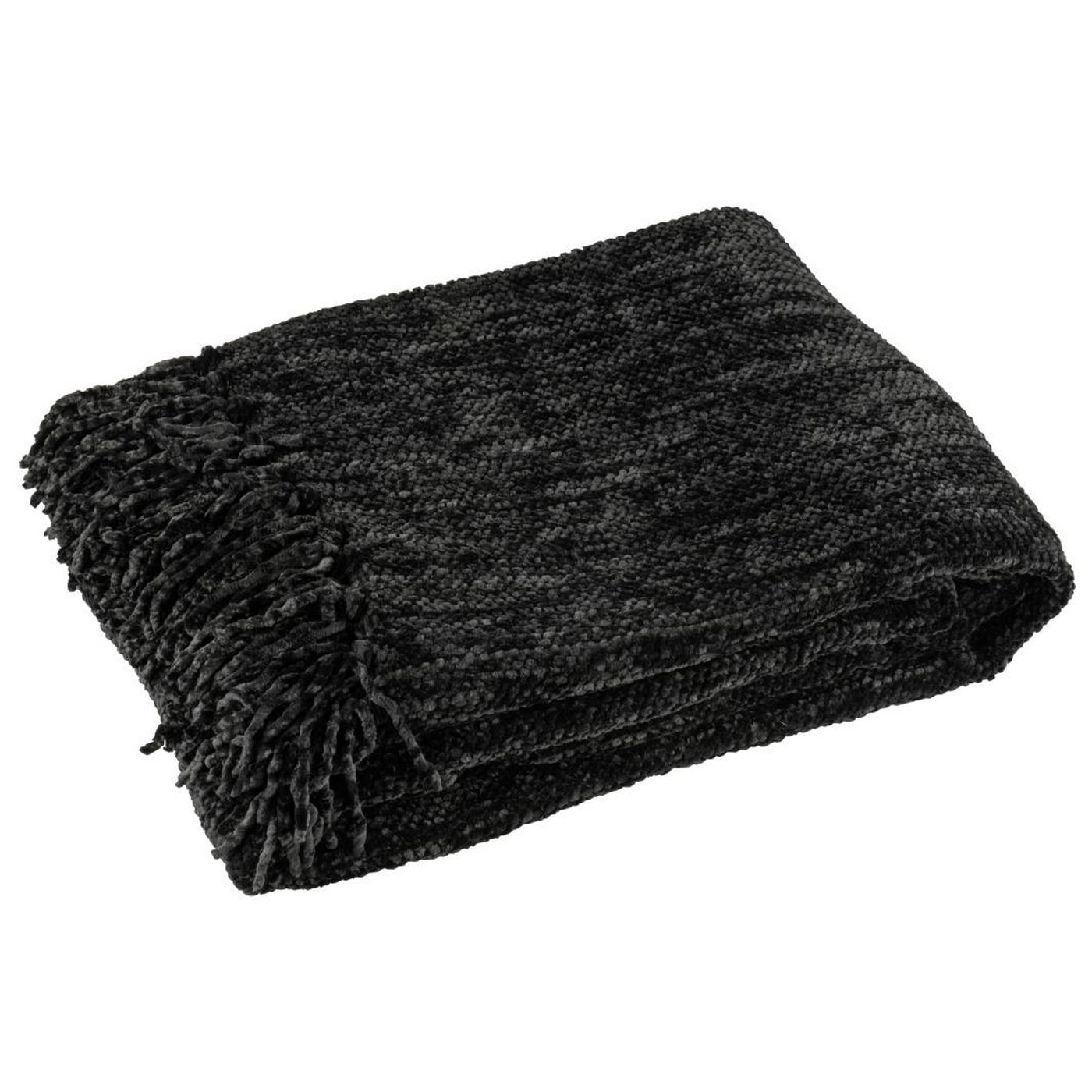 J-Line Couverture Chenille Polyester Noir L130xB170 cm 57069