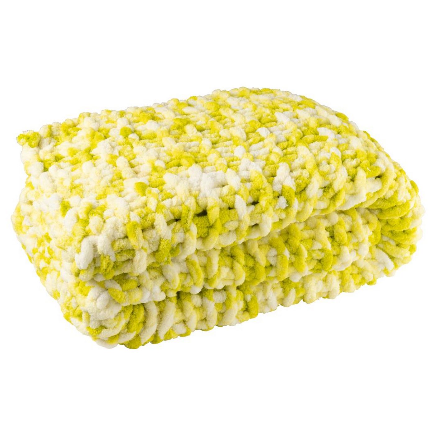 J-Line Couverture Tricoté Polyester Vert-Blanc L130xB170xH4 cm 58642