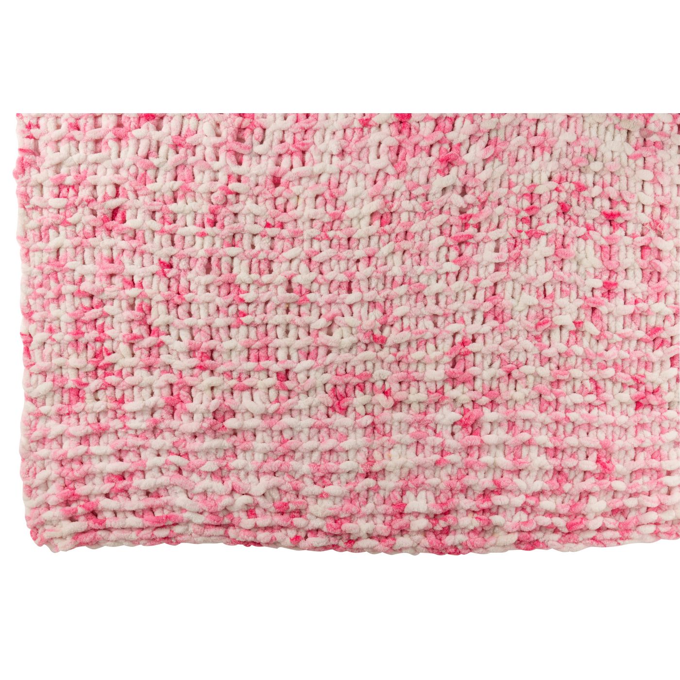 J-Line Couverture Tricoté Polyester Rose-Blanc L130xB170xH4 cm 58645