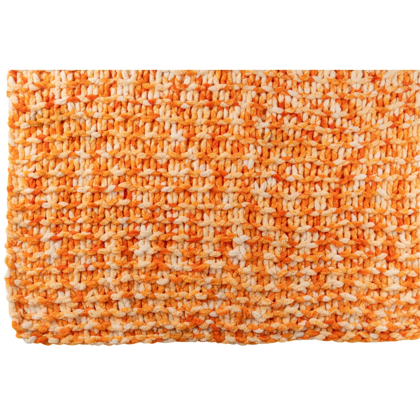 J-Line Couverture Tricoté Polyester Orange-Blanc L130xB170xH4 cm 58648