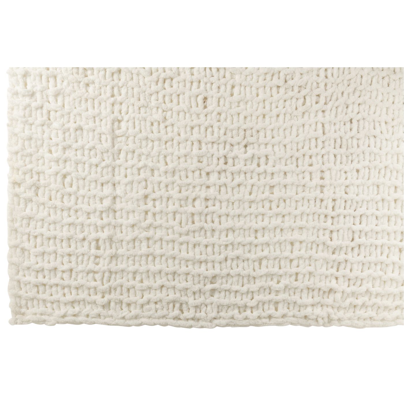 J-Line Couverture Tricoté Polyester Blanc L130xB170xH4 cm 58651