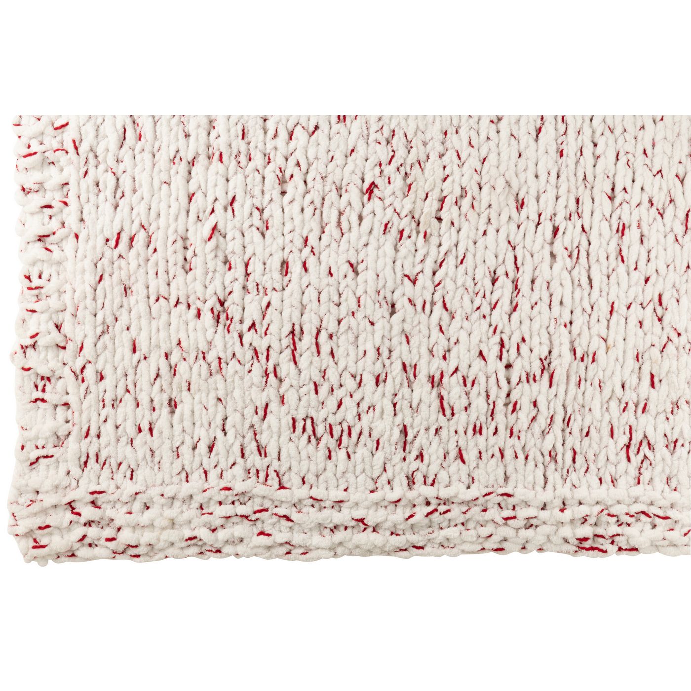 J-Line Couverture Tricoté Polyester Blanc-Rouge Noël L130xB170xH4 cm 58655
