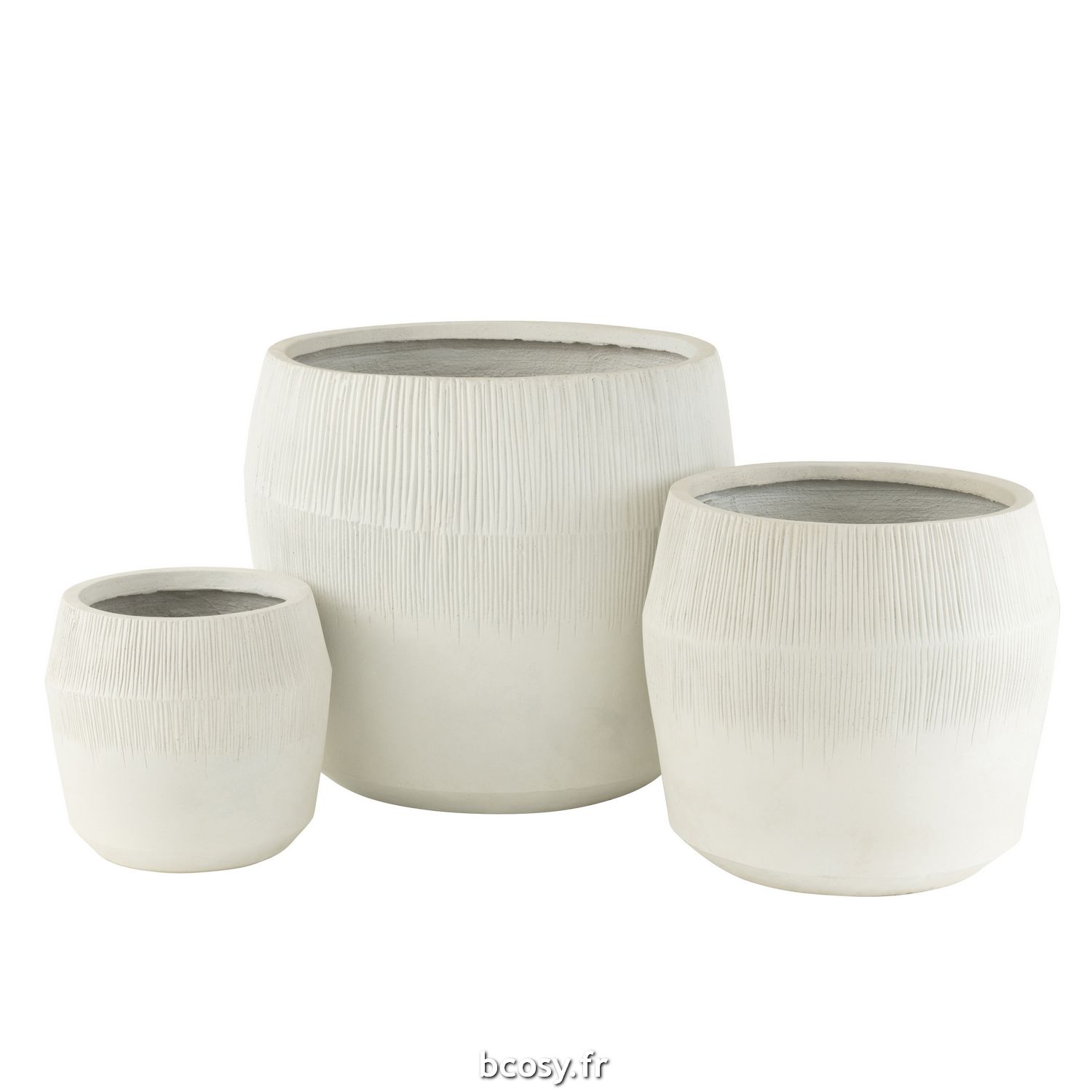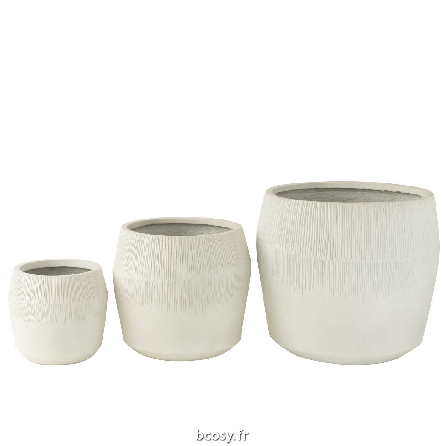J-Line by Jolipa Set 3 Cachepot Argile Blanc