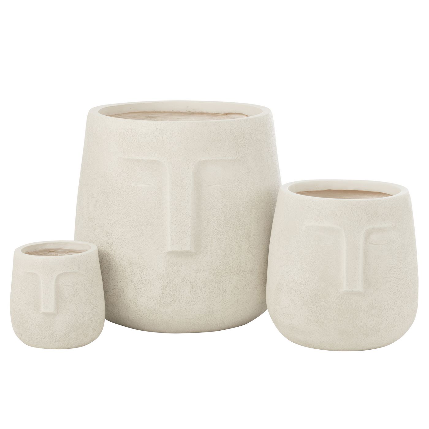 J-Line Set De 3 Cachepots Moai Argile Blanc L45xB44xH43 cm 53161