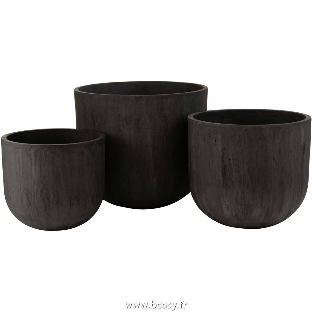 Jolipa Set 3 Cachepots Ronds Ceramique Haut Noir