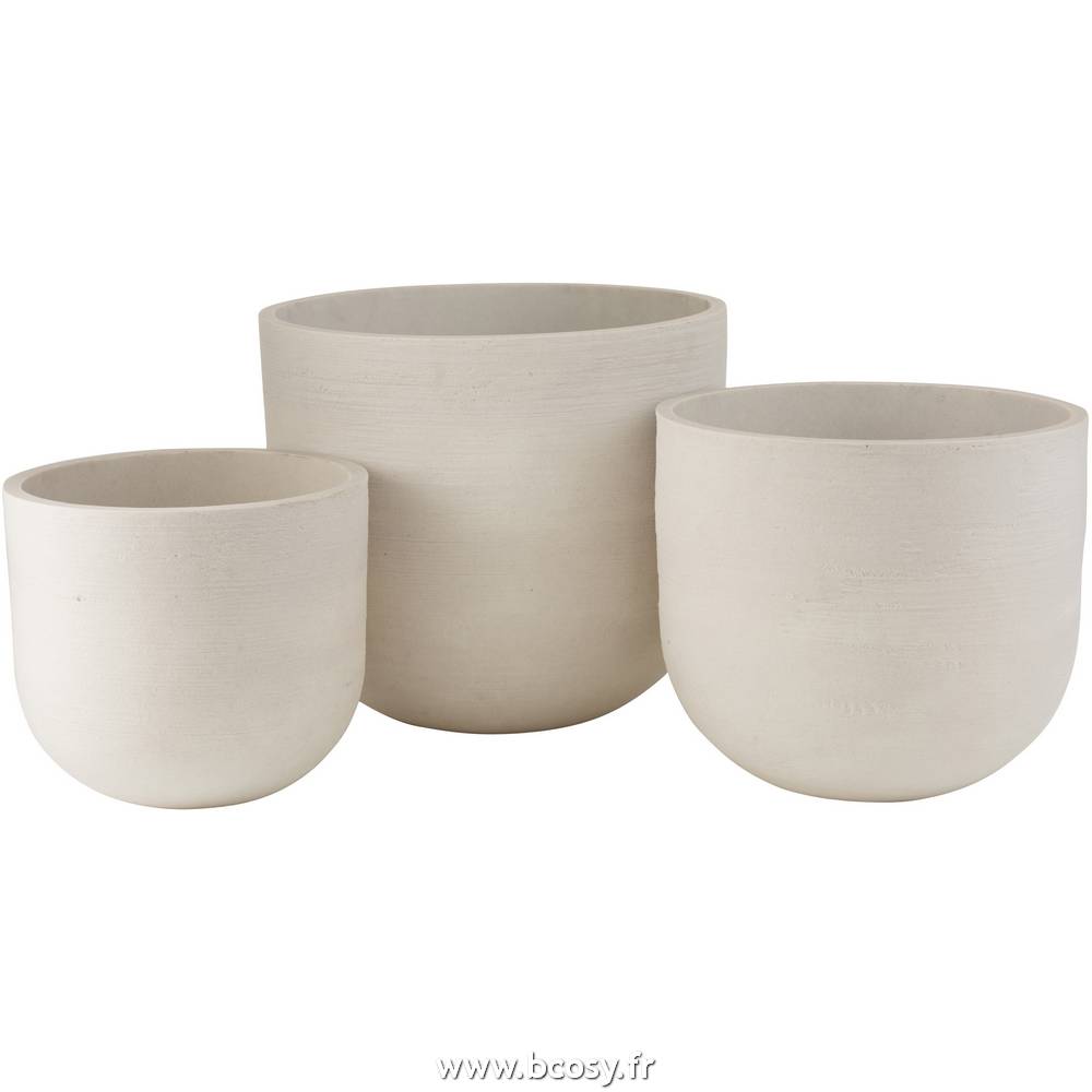 Jolipa Set 3 Cachepots Ronds Ceramique Haut Blanc