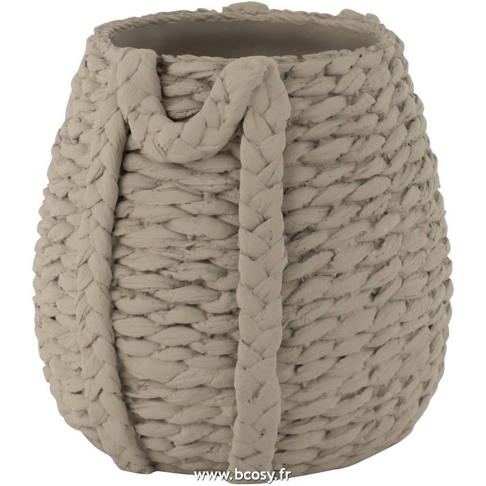 J-Line Cachepot Tisse Ciment Gris Medium 39H 5272
