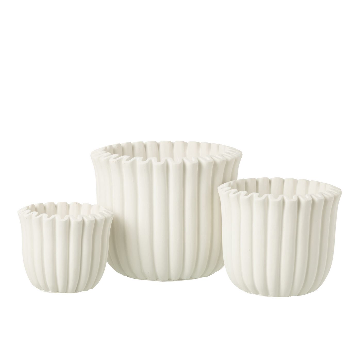 J-Line by Jolipa Cachepot Cotelé Ciment Blanc Large