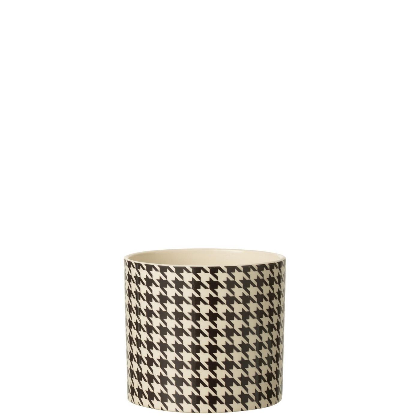 J-Line by Jolipa Cachepot Rond Pied De Poule Margo Céramique Blanc/Noir Medium