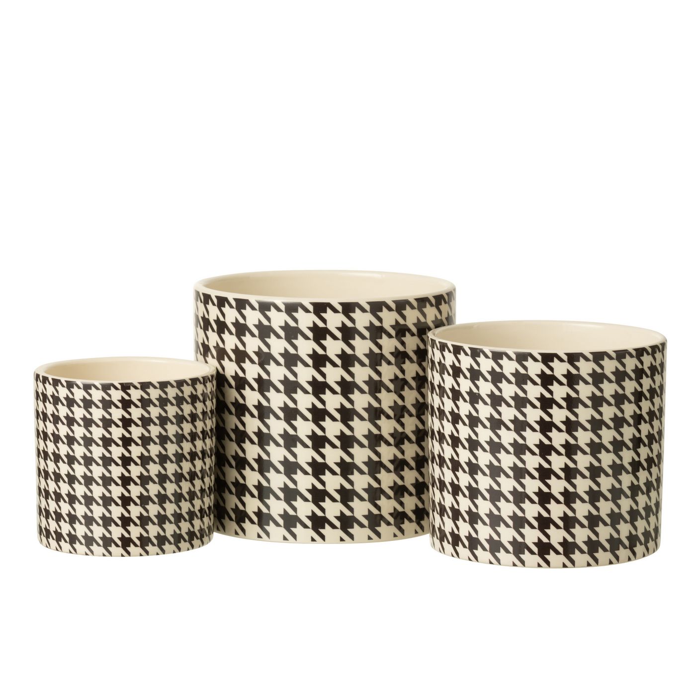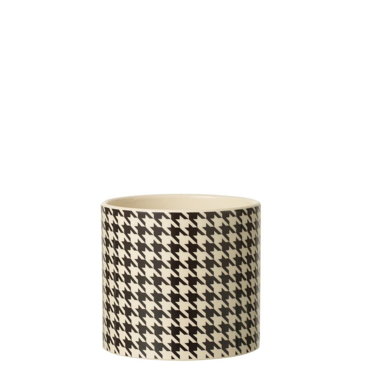 J-Line by Jolipa Cachepot Rond Pied De Poule Margo Céramique Blanc/Noir Large