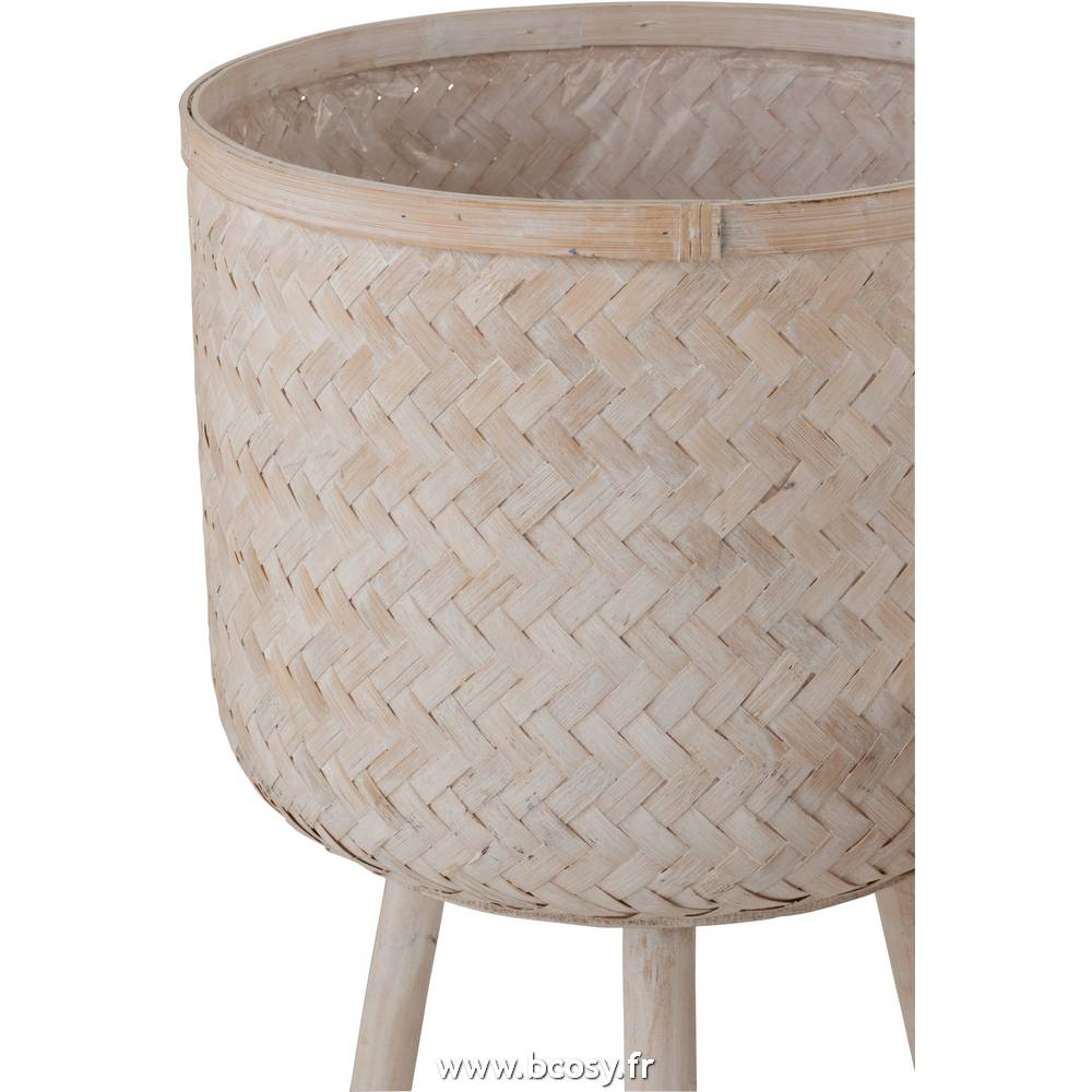 Jolipa Set De 3 Cachepot 3 Pieds Bambou Plastique Naturel Wash