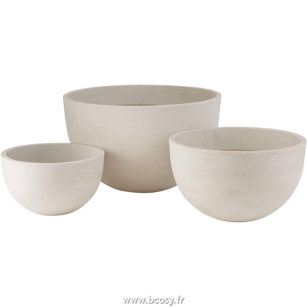 Jolipa Set 3 Cachepots Ronds Ceramique Bas Blanc