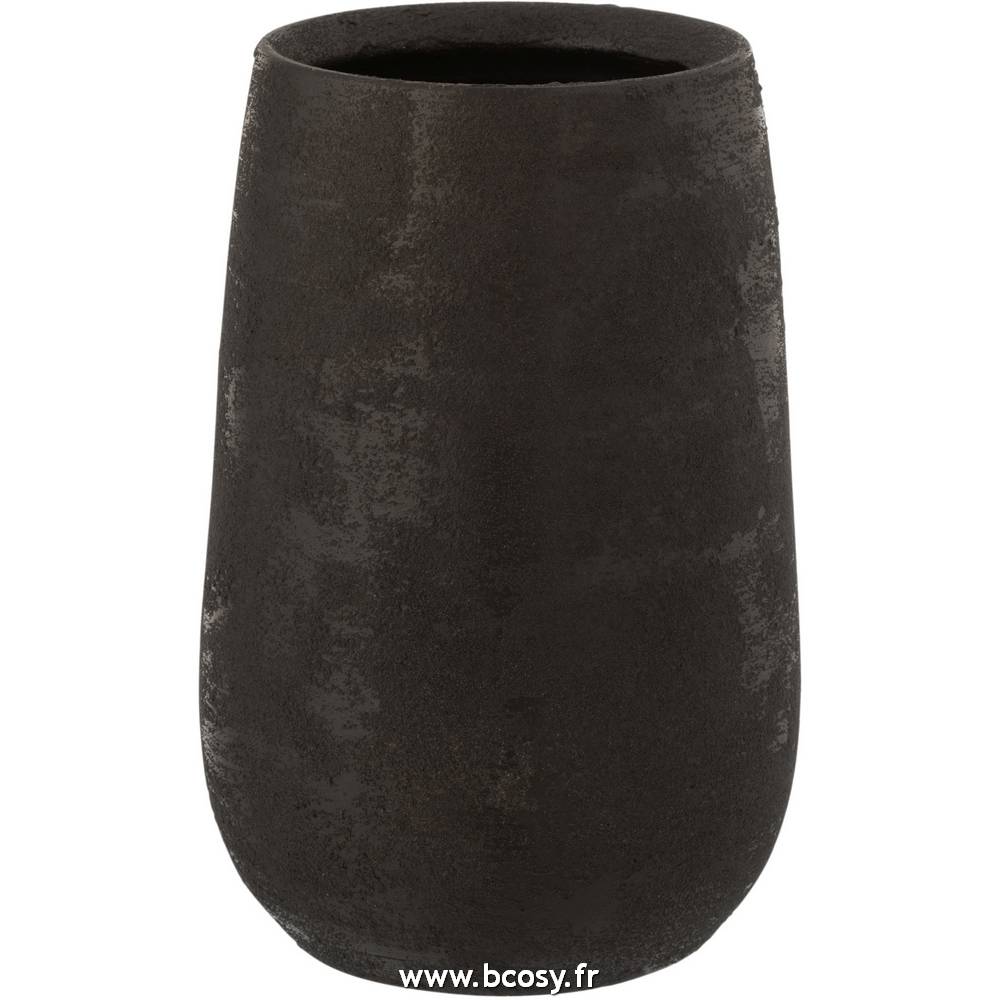 J-Line Vase Irregulier Rugueux Ceramique Noir Small 30H 7088