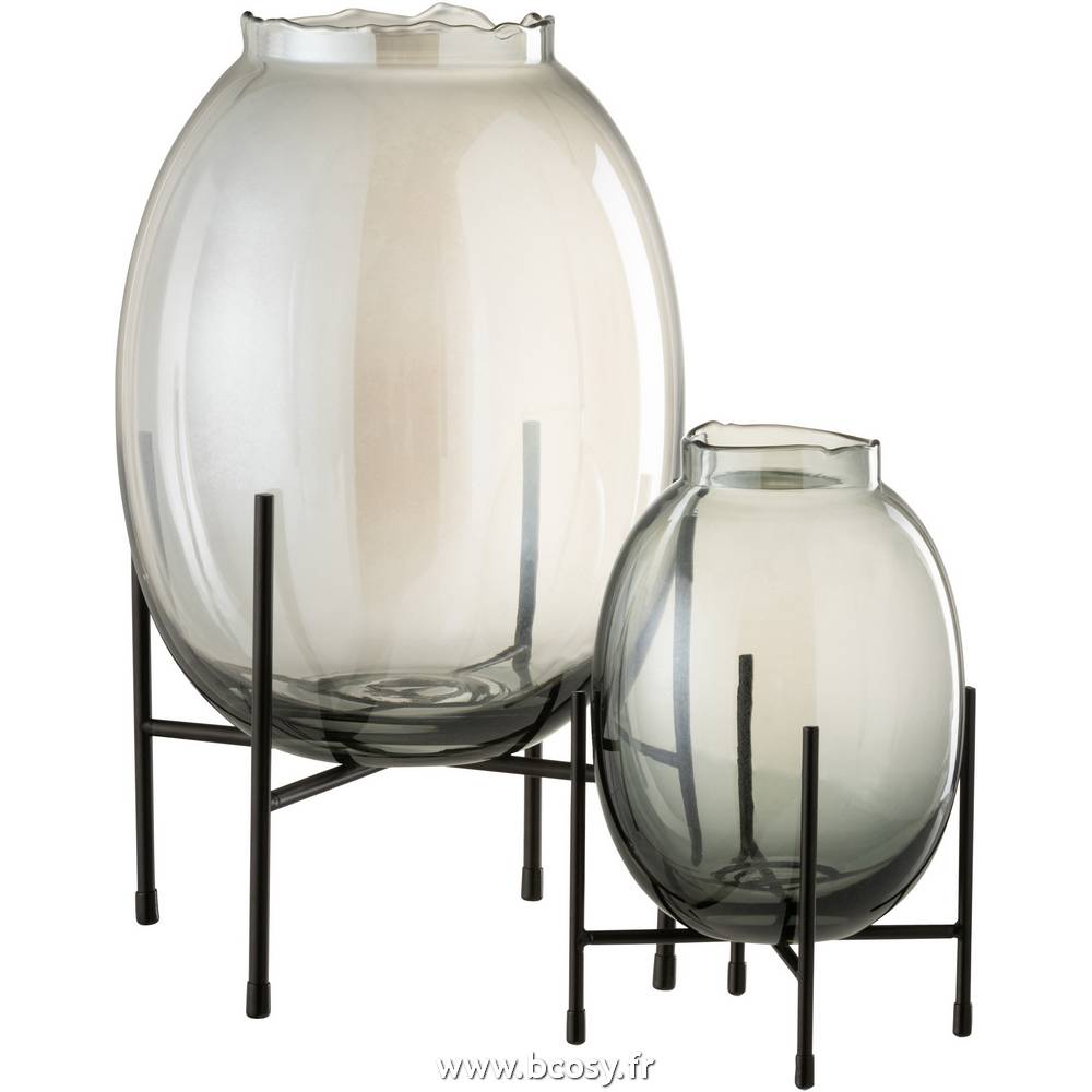 Jolipa Vase Pied Bord Irregulier Gris Bleu Noir Large