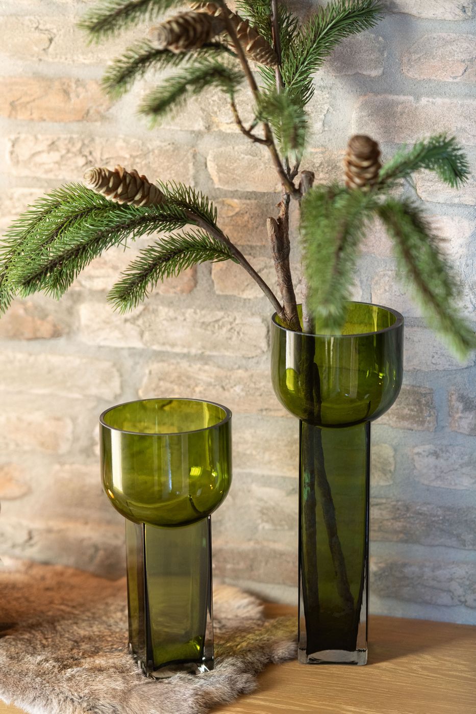 J-Line Vase Carol Verre Vert Olive Large L13xB13xH35 cm 58074