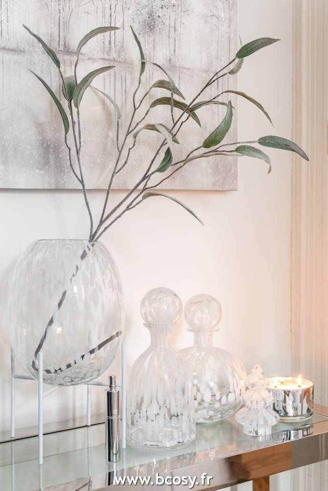 Jolipa Vase Pied Pois Decoratif Verre Transparent Blanc Large